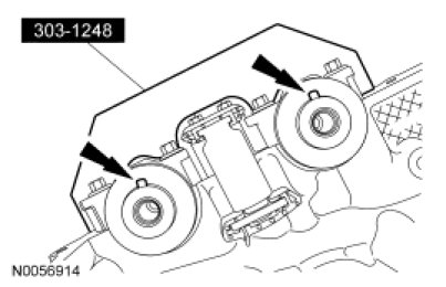 Rotate the RH camshafts to the top dead center position and install the Camshaft Holding Tool on the flats of the camshafts.