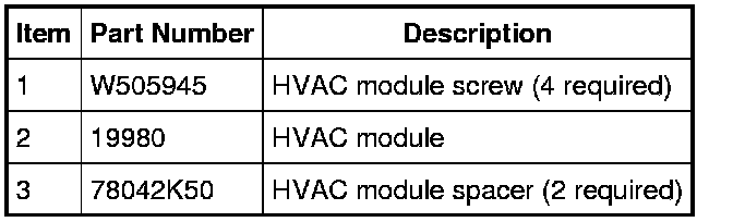 4. NOTE: Be sure the HVAC module spacers are correctly positioned before installing the HVAC module.