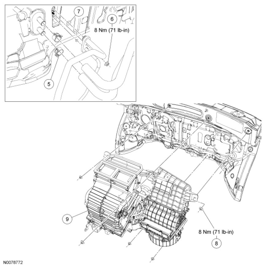 11. Remove the 5 heater core and evaporator core housing nuts.