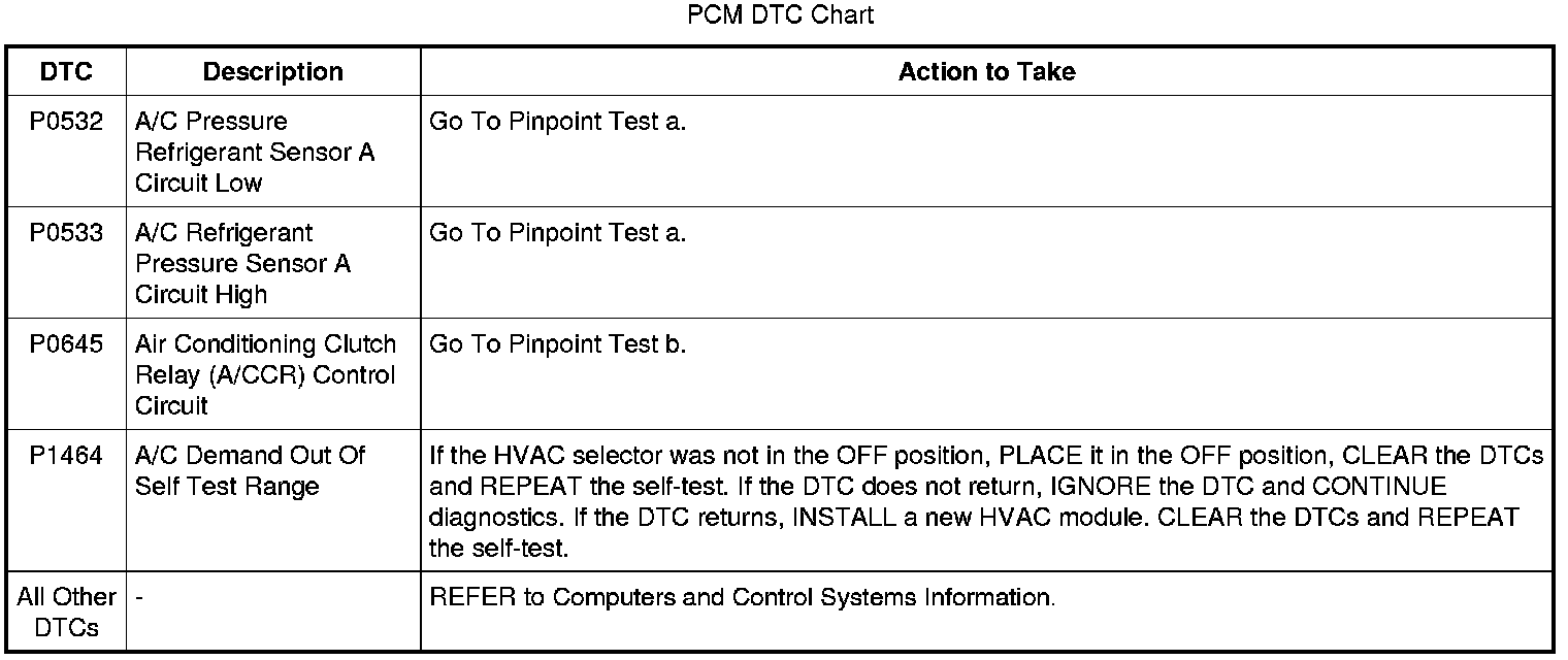 PCM DTC Chart