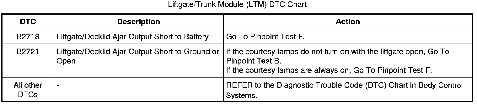 Liftgate/Trunk Module (LTM) DTC Chart