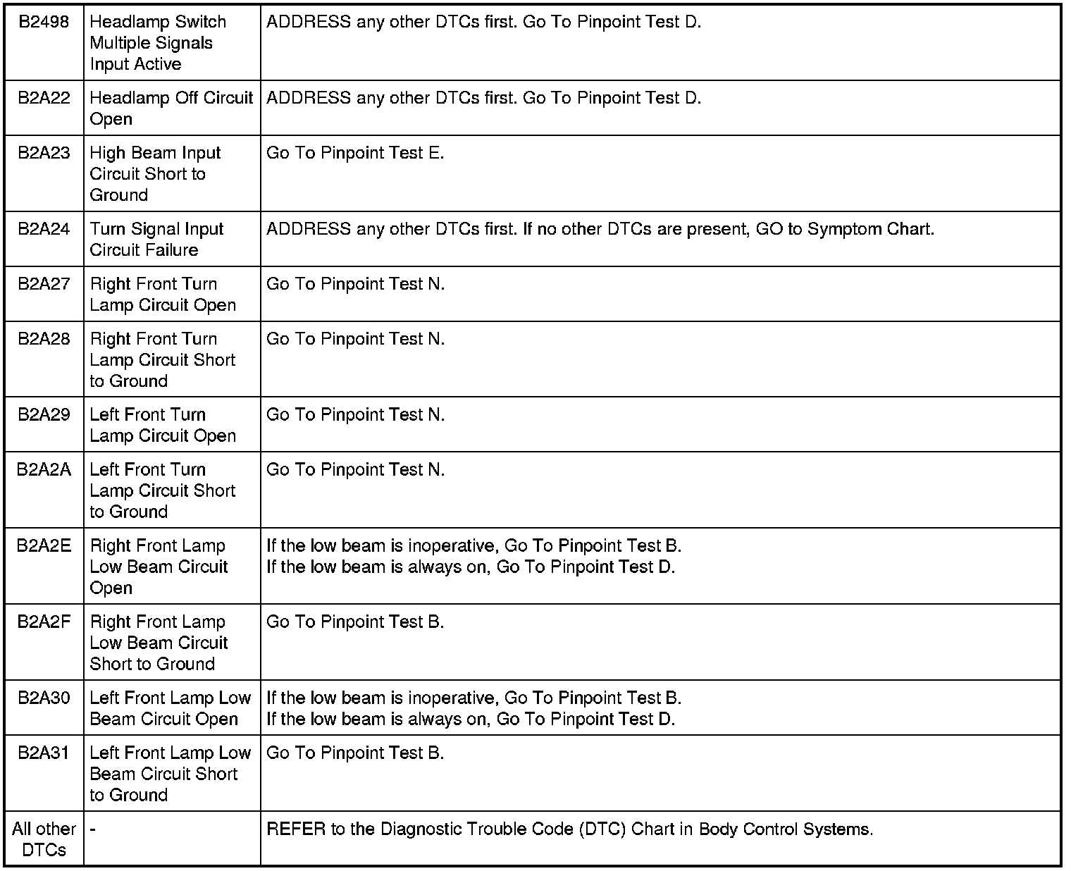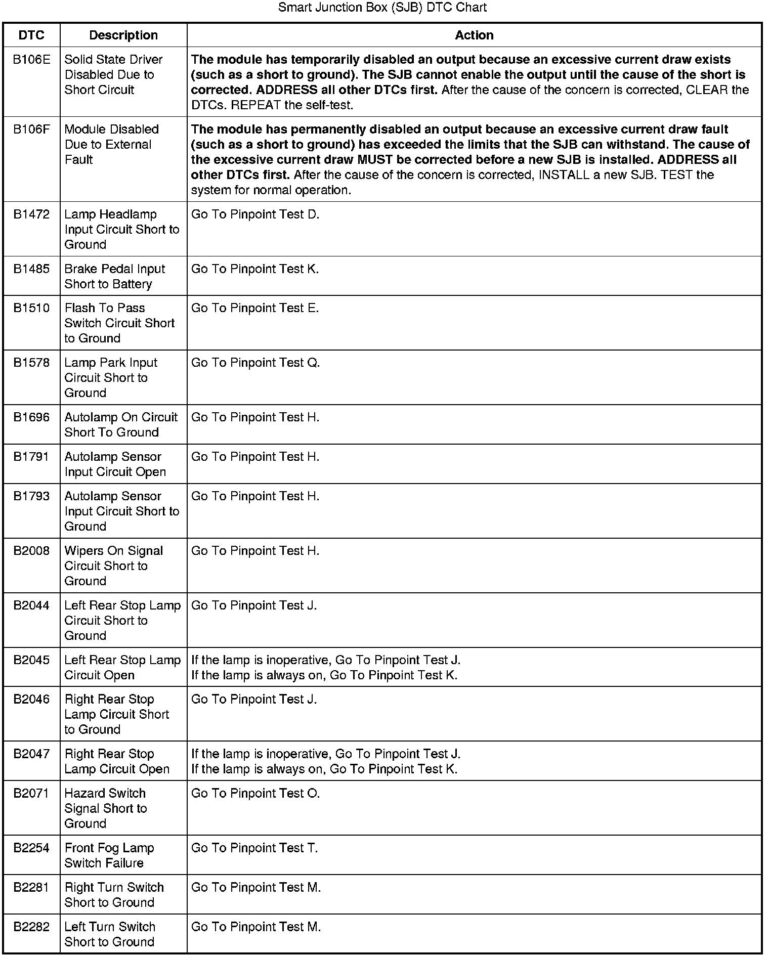 Smart Junction Box (SJB) DTC Chart