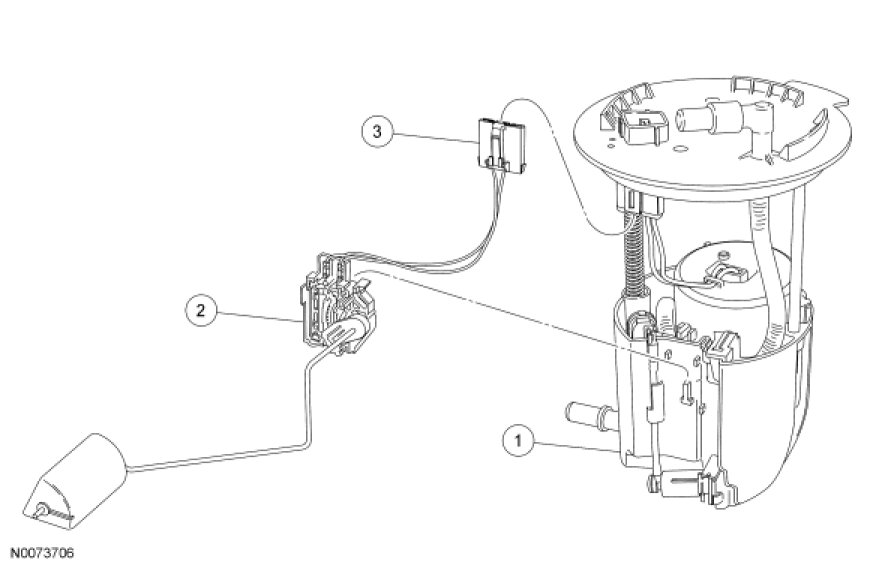 3. Depress the lock tab and slide the fuel level sender upwards and remove.
