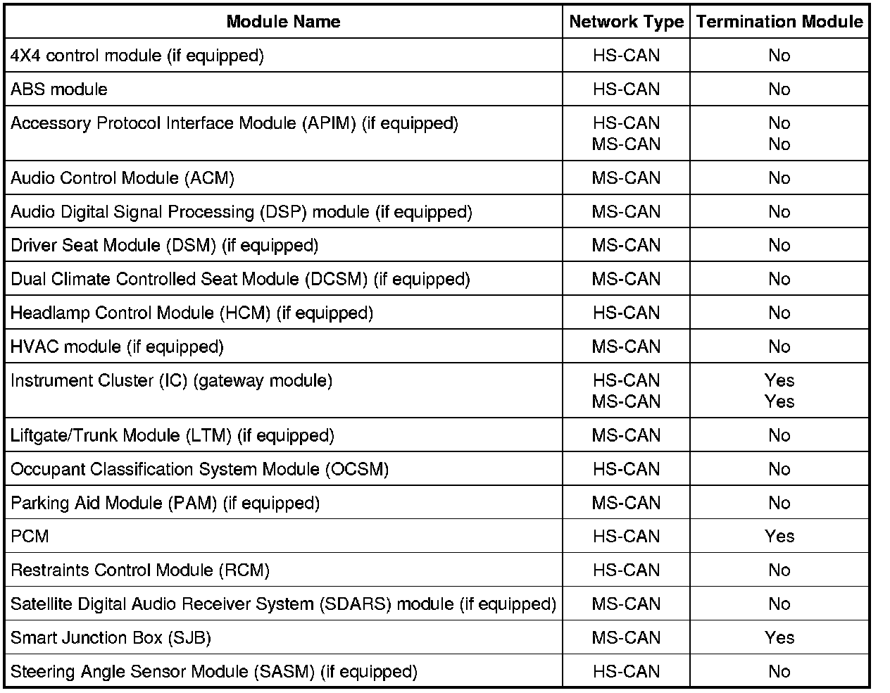 The IC is the gateway module, translating HS-CAN to MS-CAN and vice versa. This information allows a message to be distributed throughout both networks. The IC is the only module on this vehicle that has this ability.