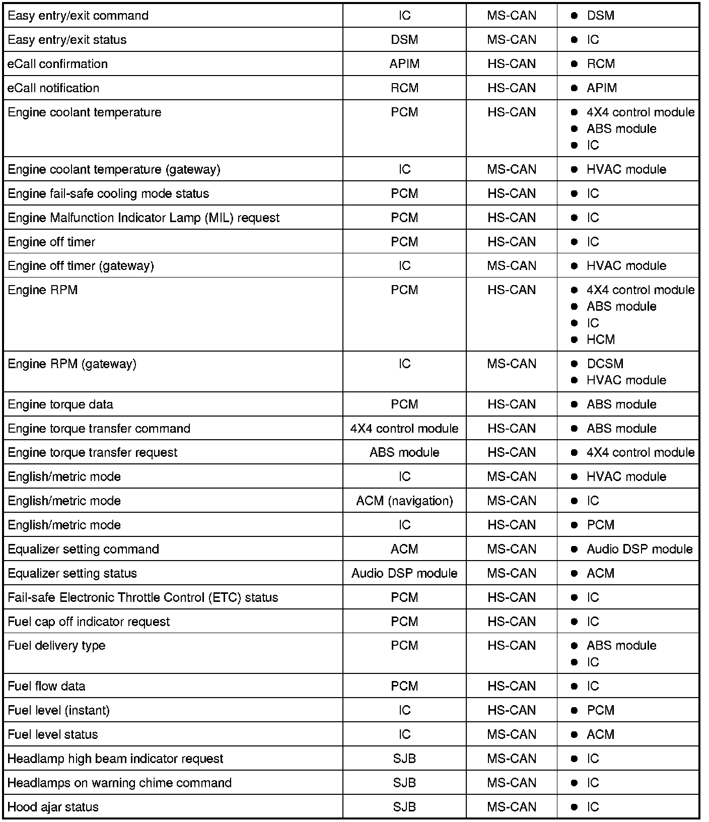 The MS-CAN operates at a maximum data transfer speed of 125 Kbps for bus messages and is designed for general information transfer. The HS-CAN operates at a maximum data transfer speed of 500 Kbps and is designed for real time information transfer and control.