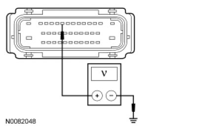 - Measure the voltage between the ABS module C135-30, circuit CBB50 (YE/OG), harness side and ground .