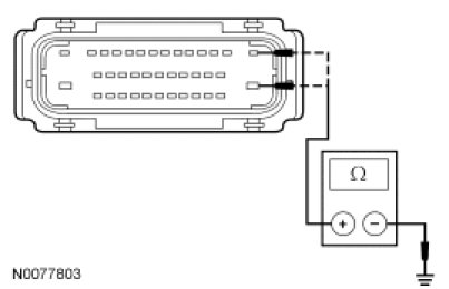 - Measure the resistance between the ABS module C135-13, circuit GD121 (BK/YE), harness side and ground; and between the ABS module C135-38, circuit GD121 (BK/YE), harness side and ground.