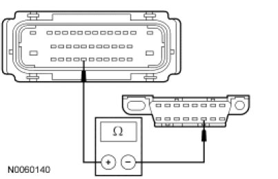 - Measure the resistance between the ABS module C135-6, circuit VDB05 (WH), harness side and the DLC C251-14, circuit VDB05 (WH), harness side.