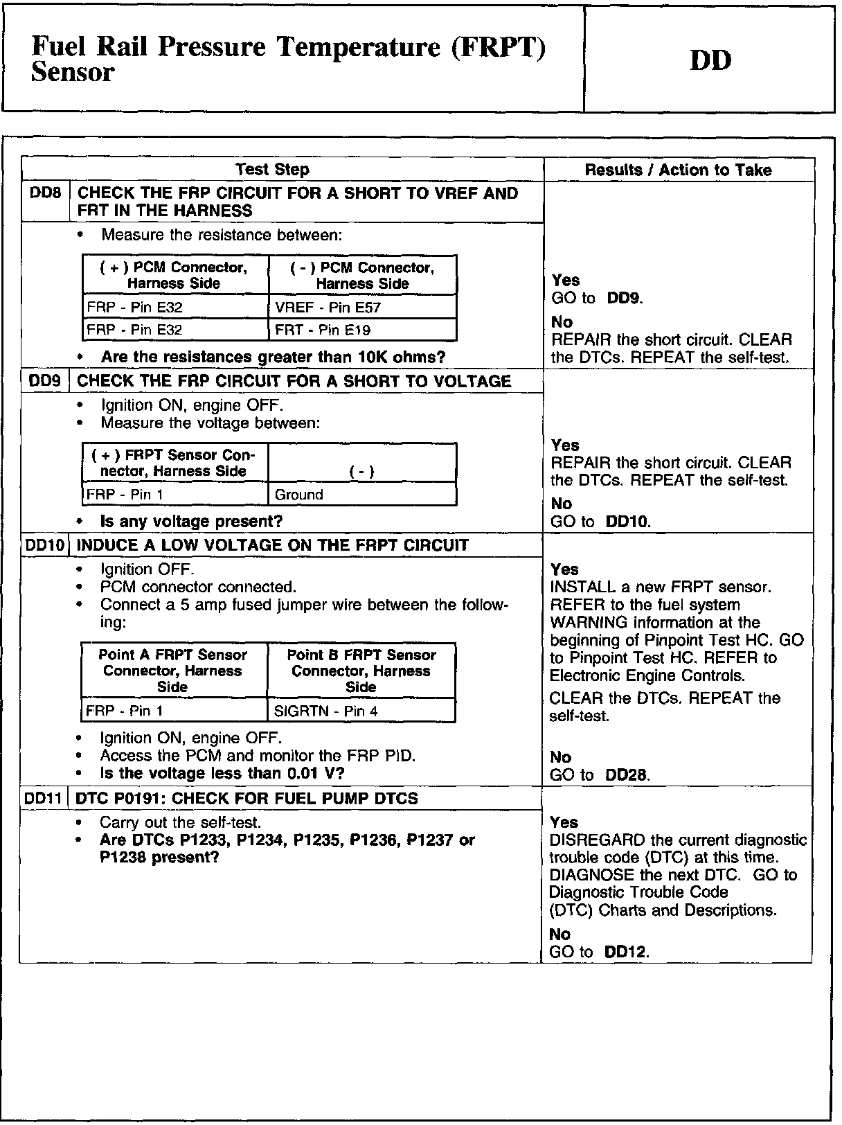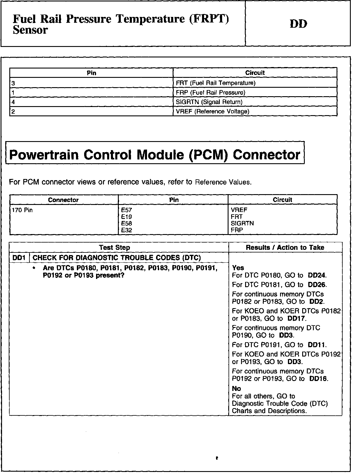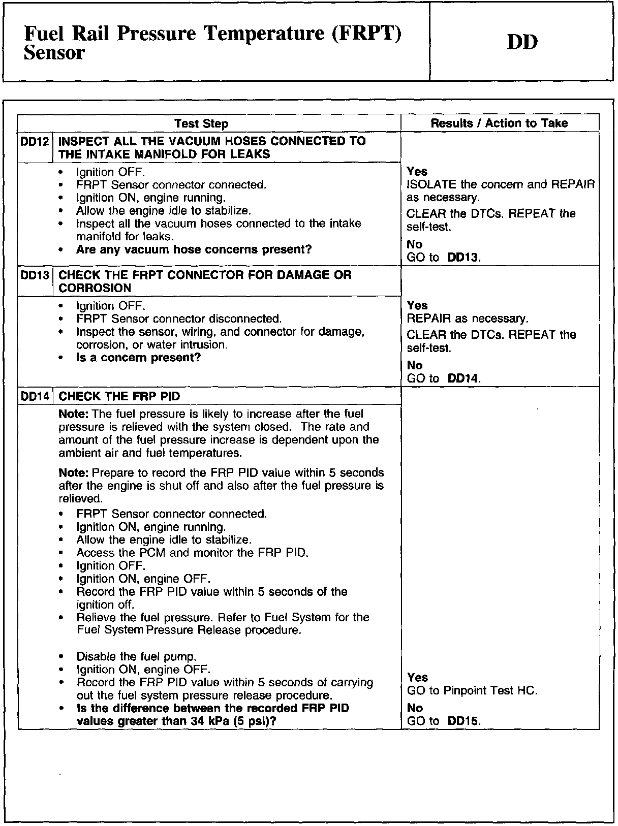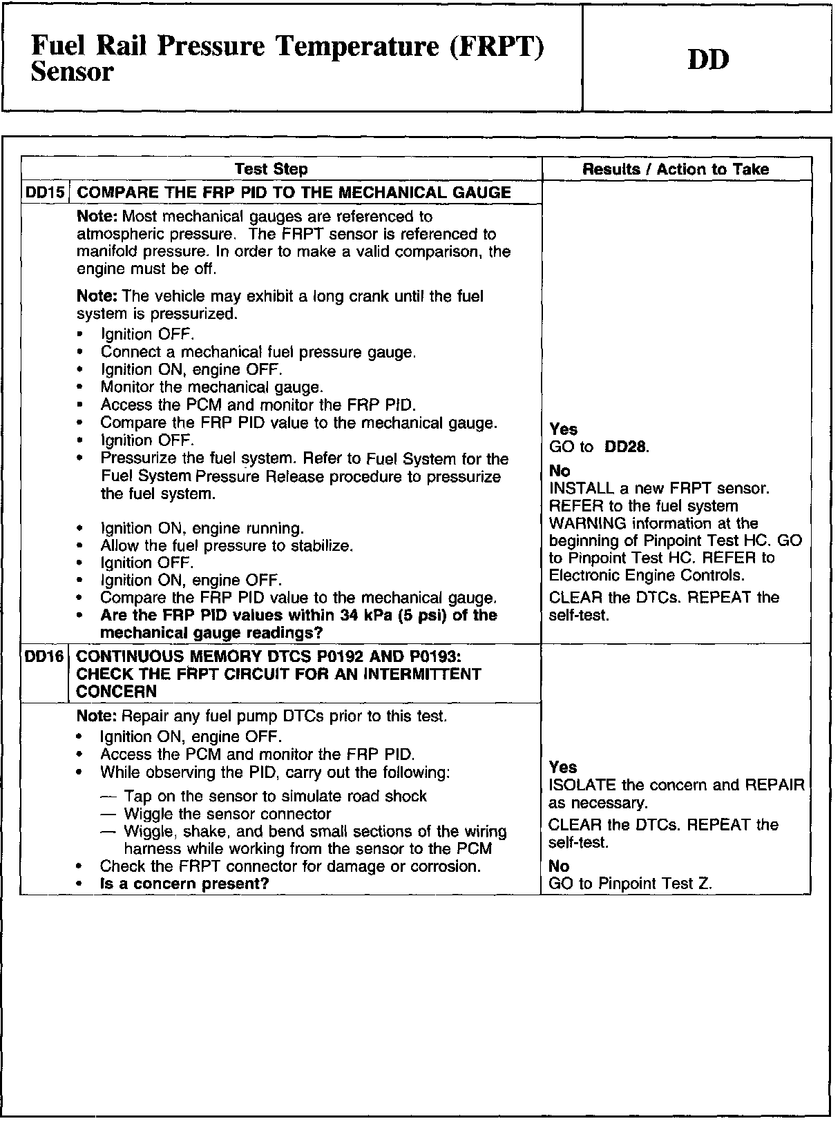 PINPOINT TEST DD: FUEL RAIL PRESSURE TEMPERATURE (FRPT) SENSORWARNING And Tables And Graphs: