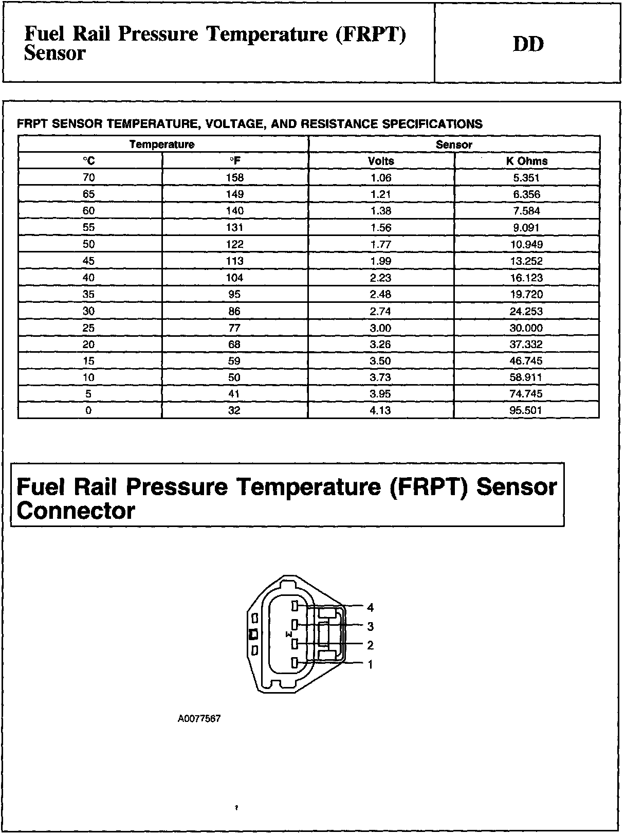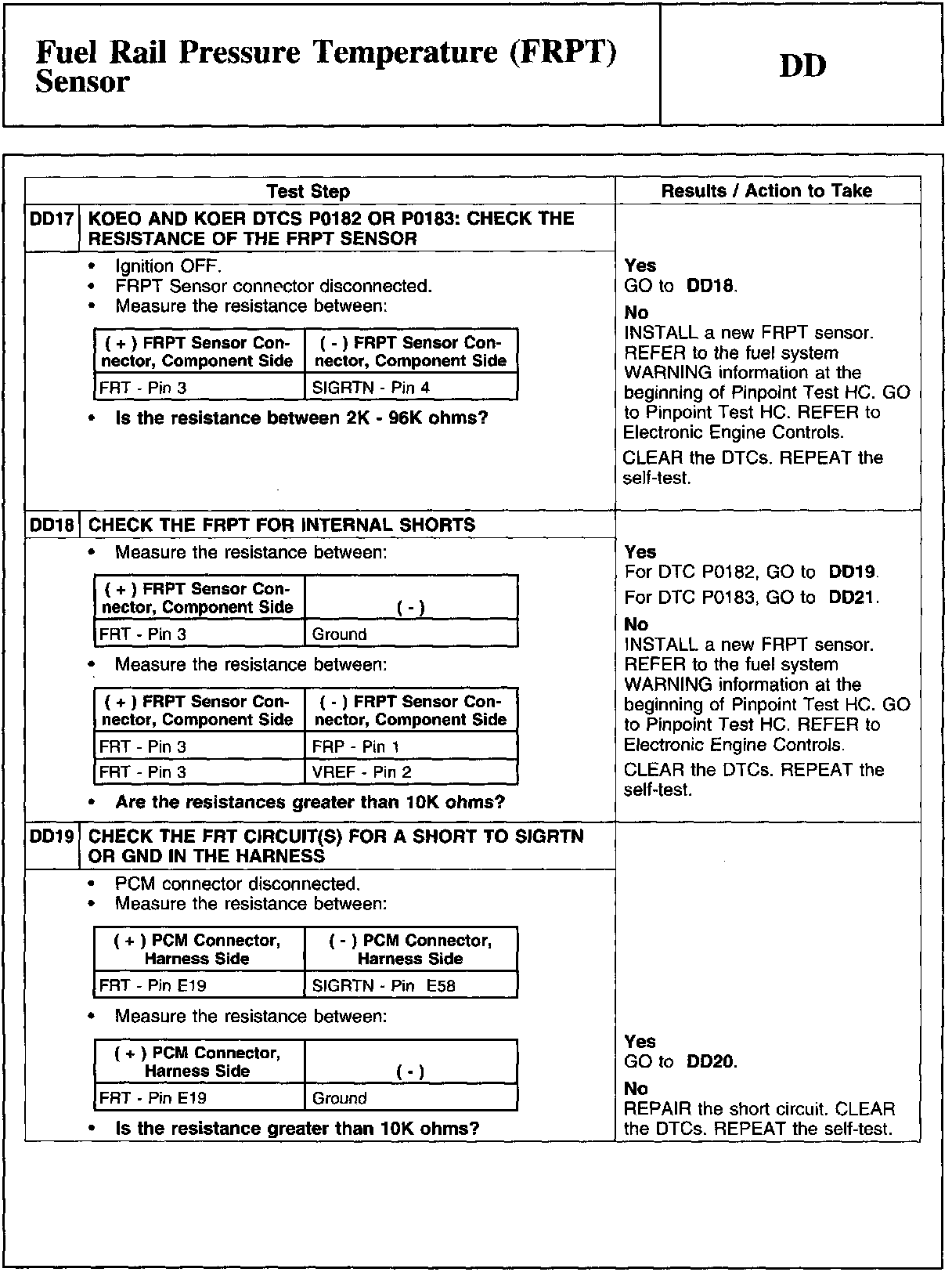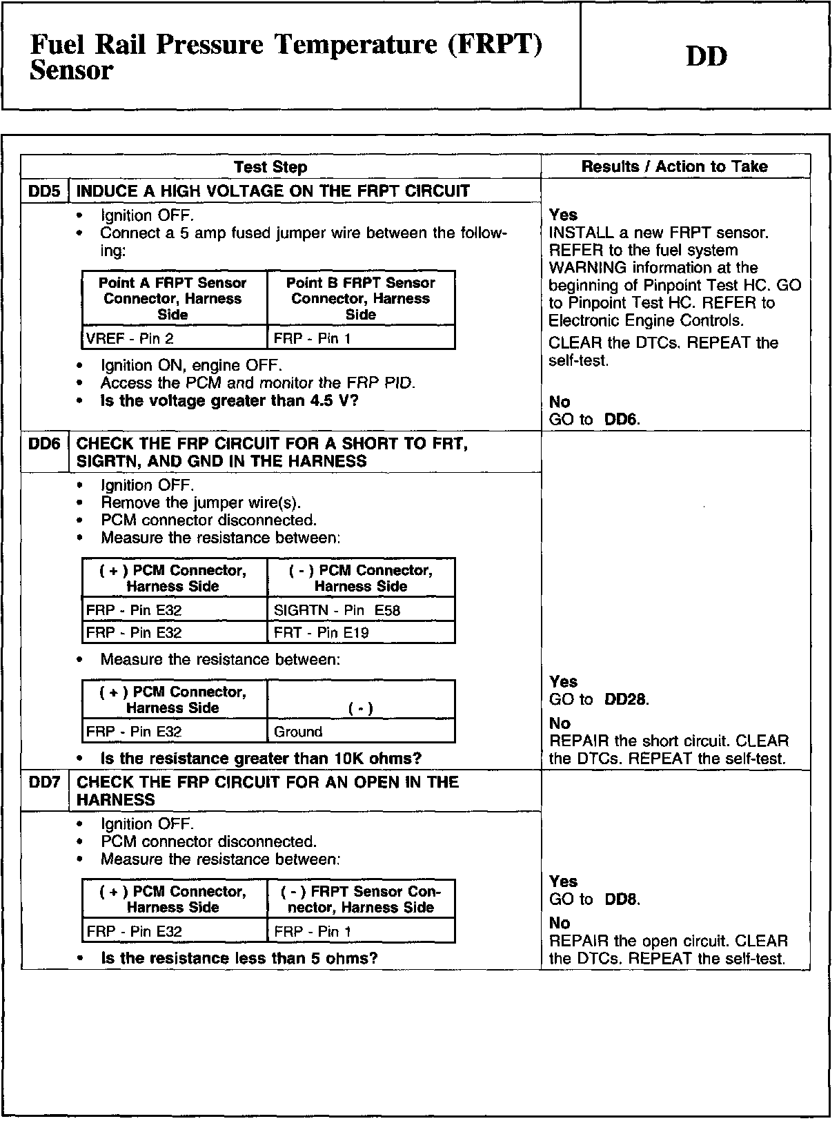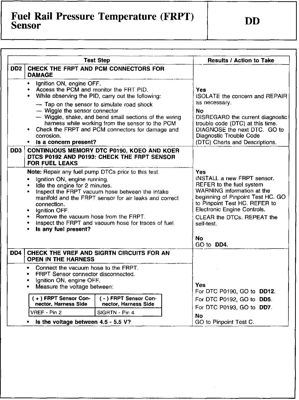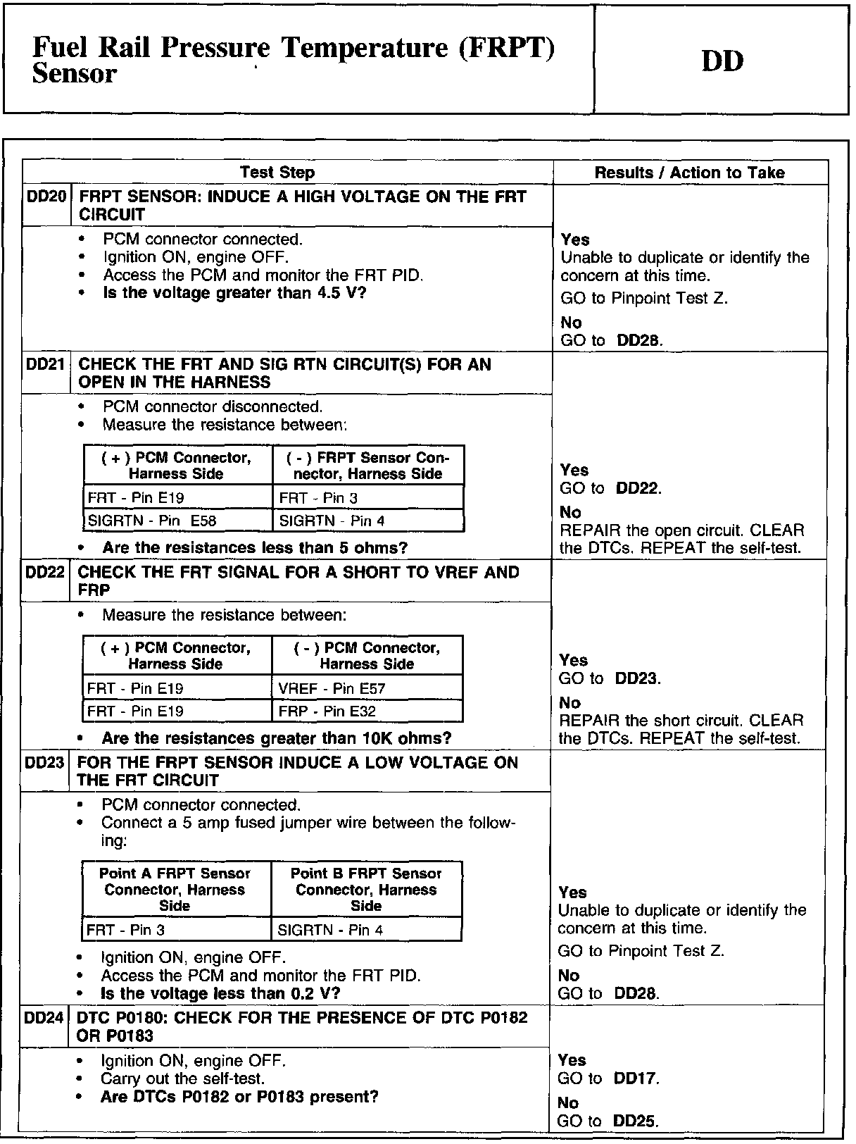 PINPOINT TEST DD: FUEL RAIL PRESSURE TEMPERATURE (FRPT) SENSORWARNING And Tables And Graphs:
