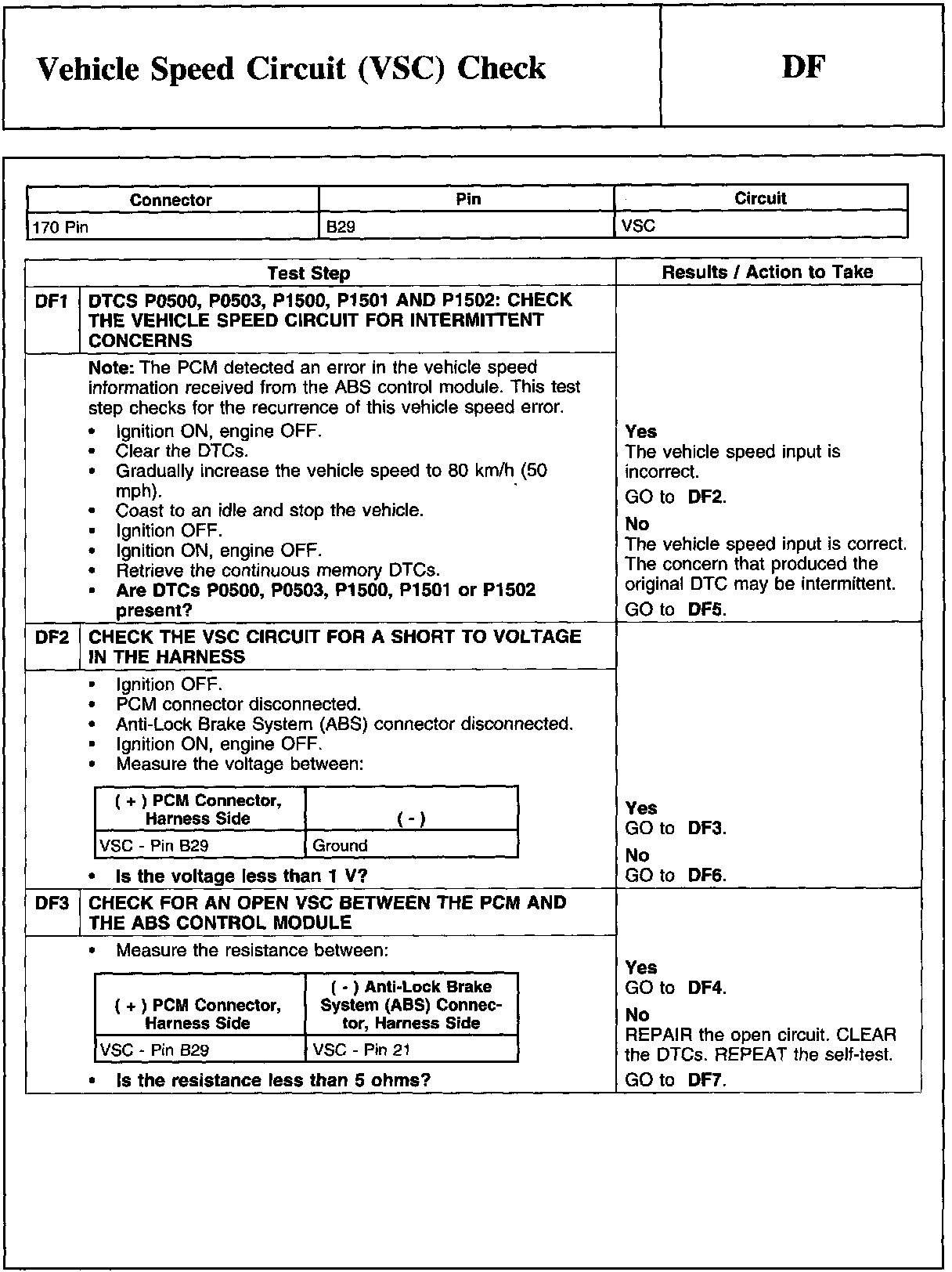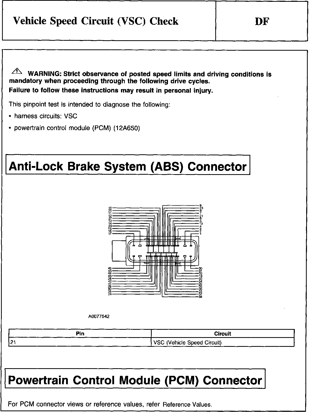 PINPOINT TEST DF: VEHICLE SPEED CIRCUIT (VSC) CHECK