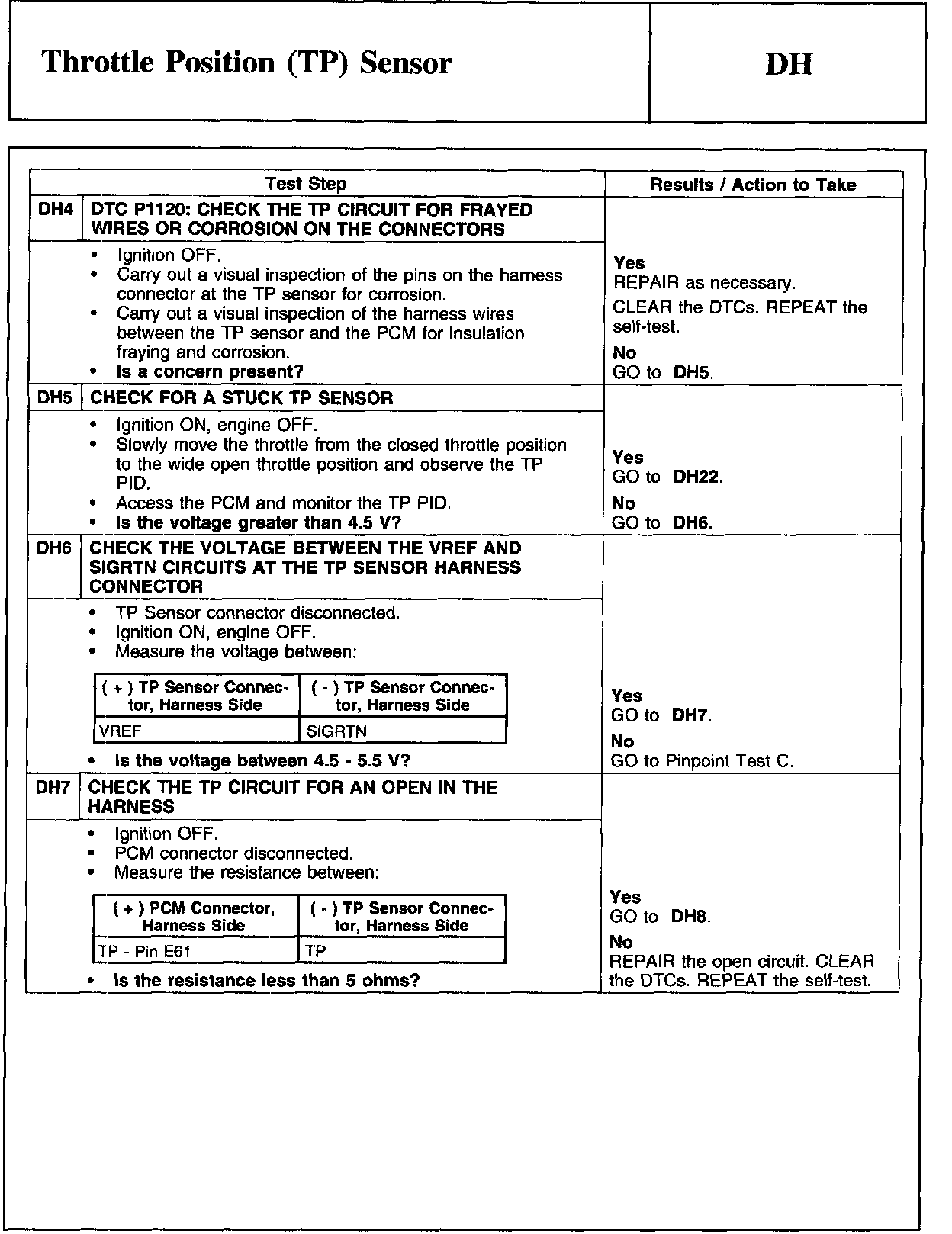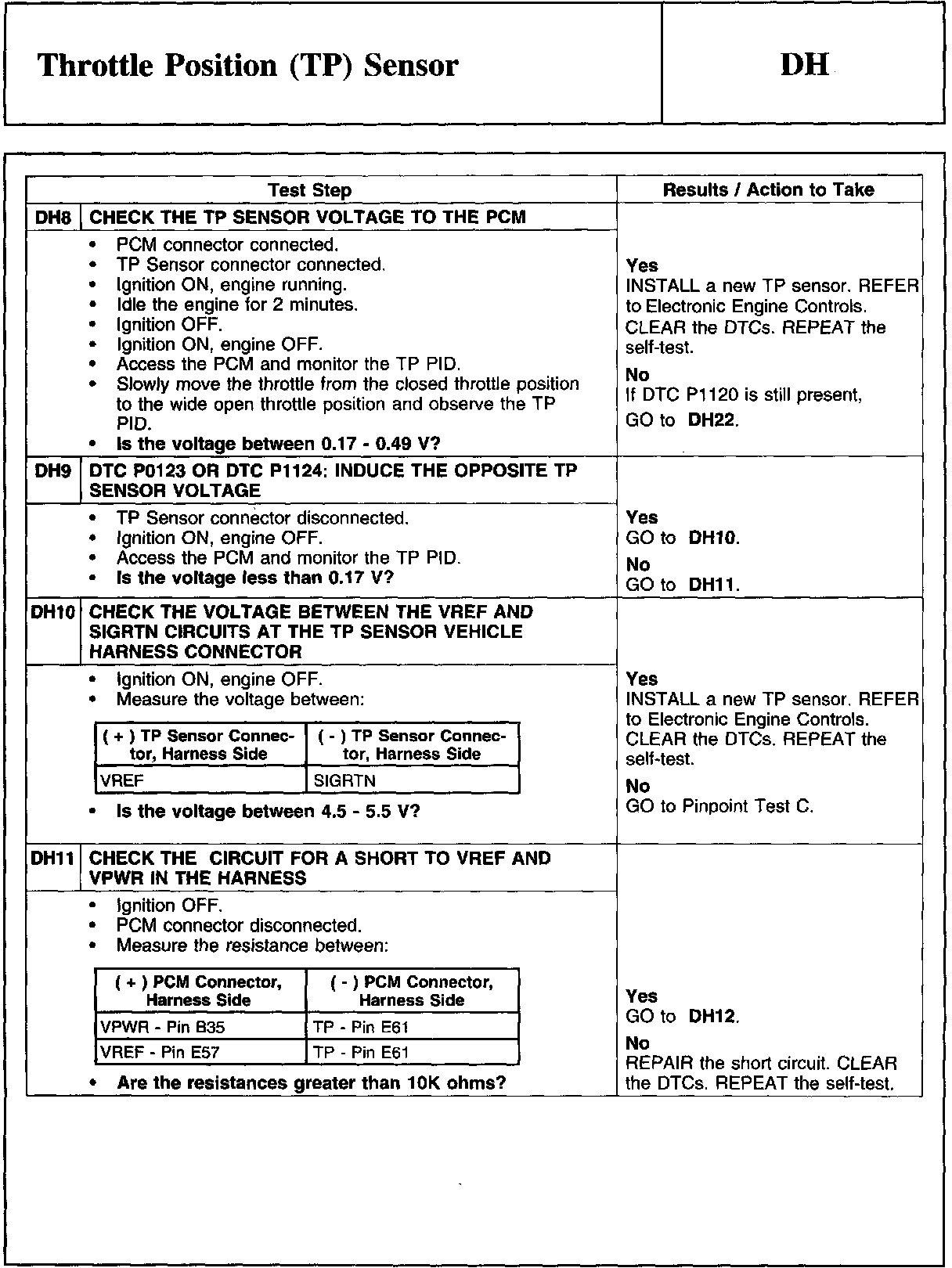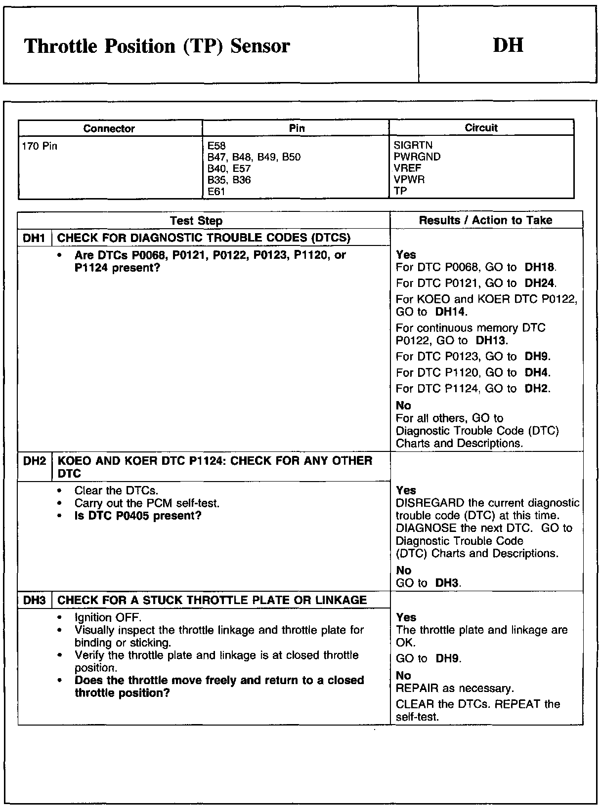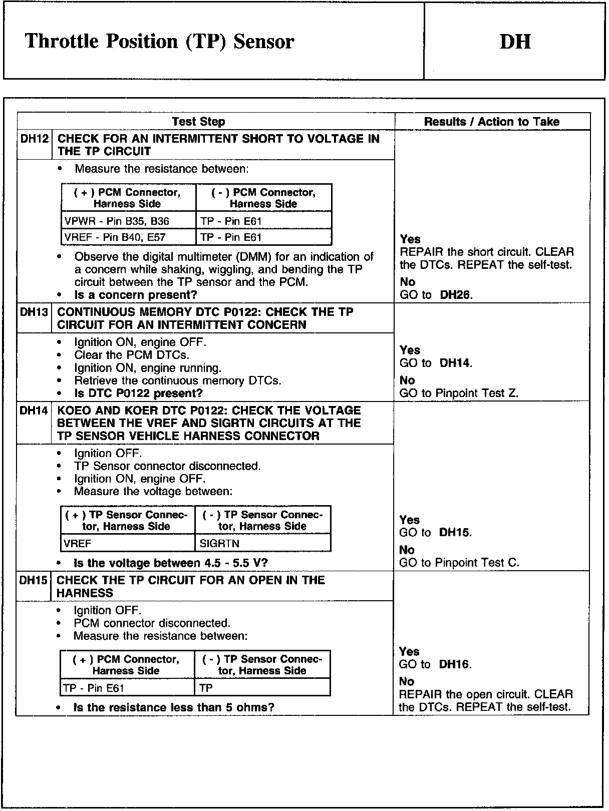 PINPOINT TEST DH: THROTTLE POSITION (TP) SENSOR