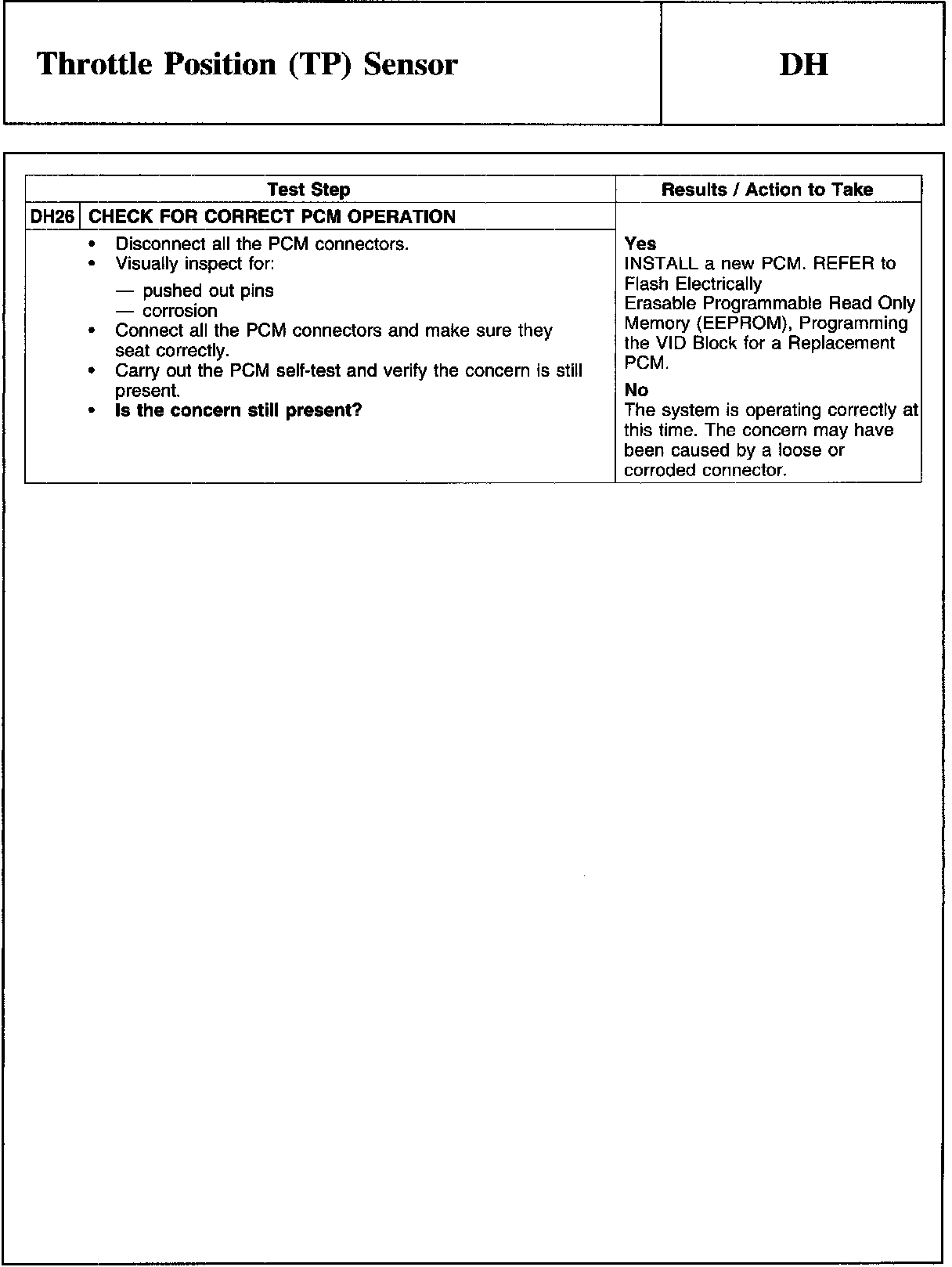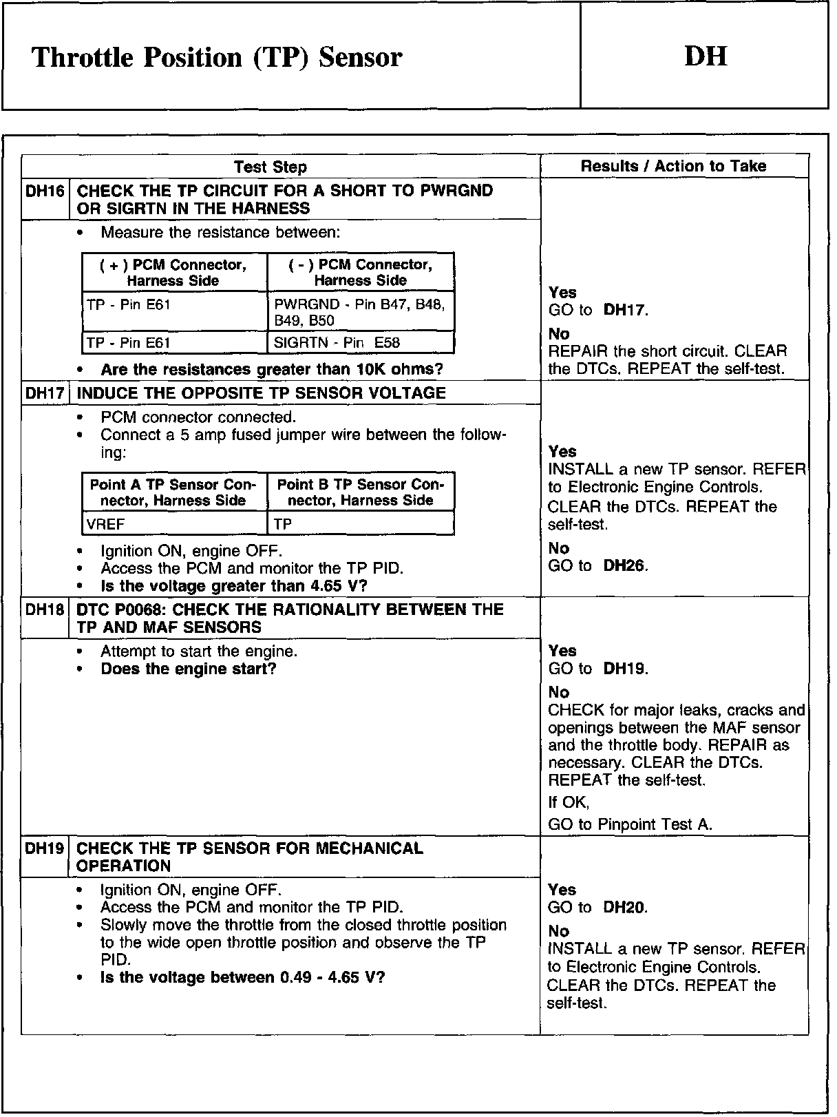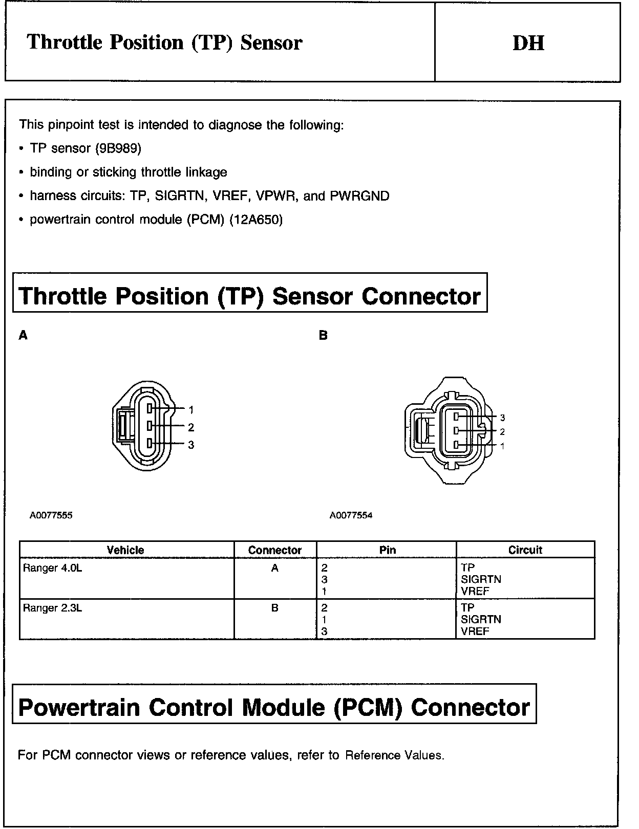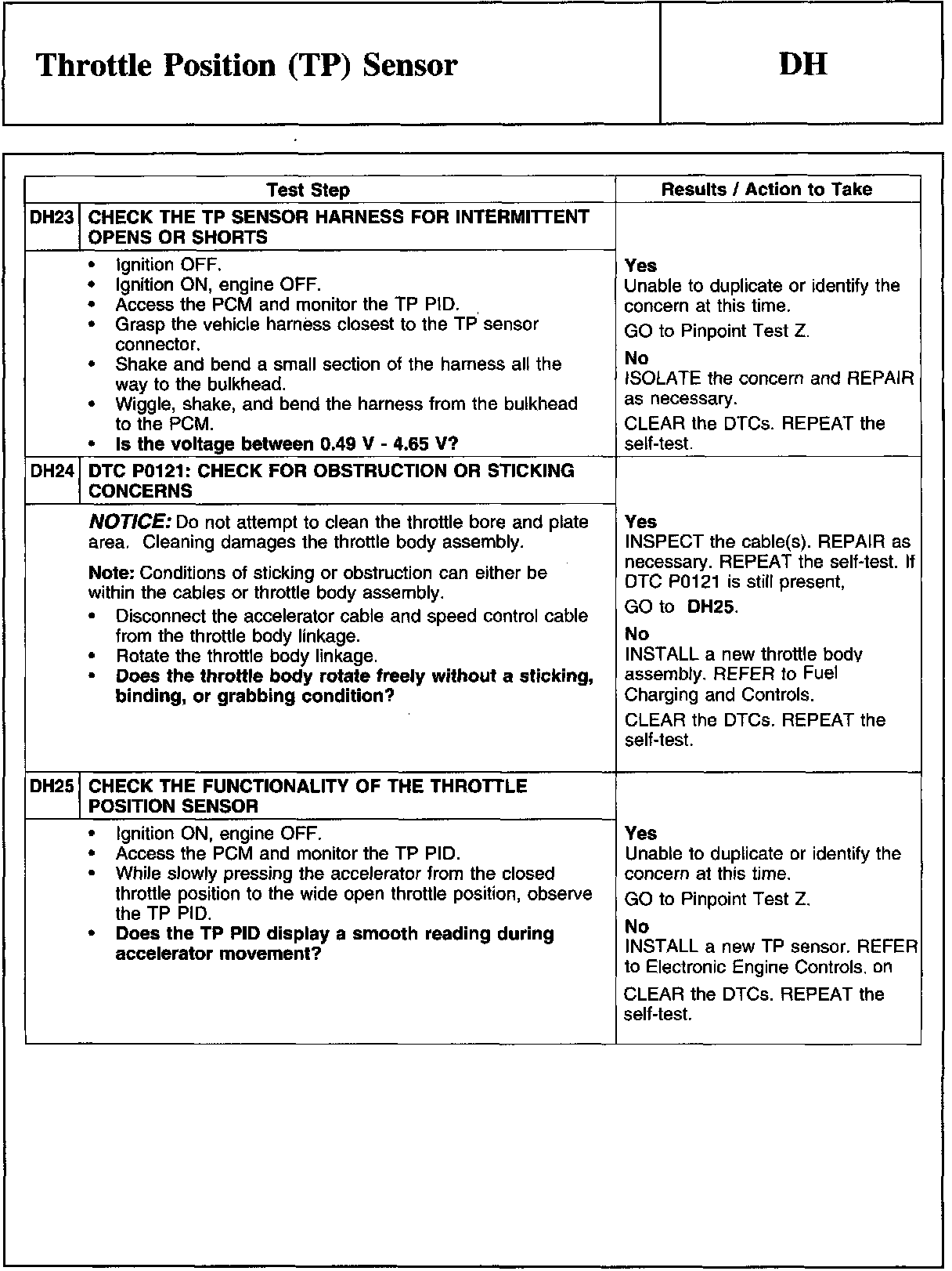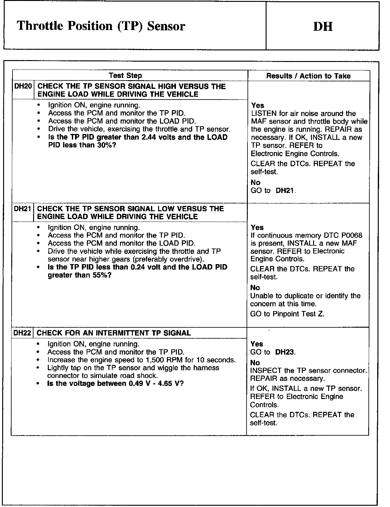 PINPOINT TEST DH: THROTTLE POSITION (TP) SENSOR