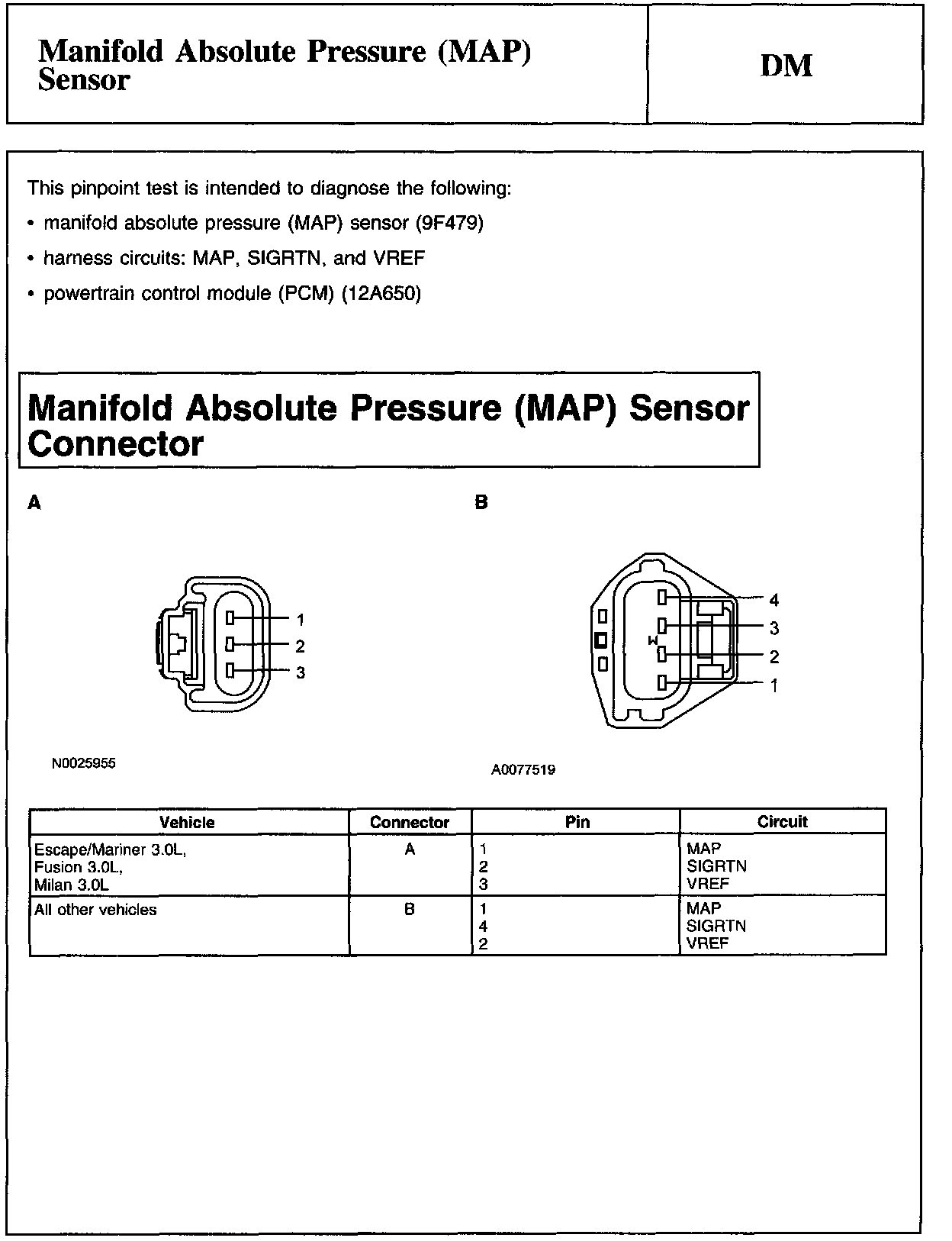 PINPOINT TEST DM: MANIFOLD ABSOLUTE PRESSURE (MAP) SENSORManifold Absolute Pressure Sensor Connector: