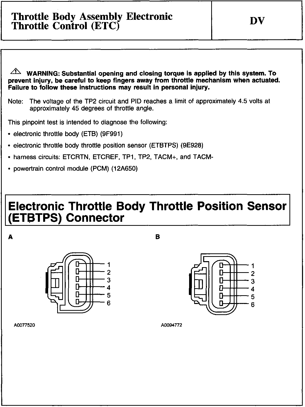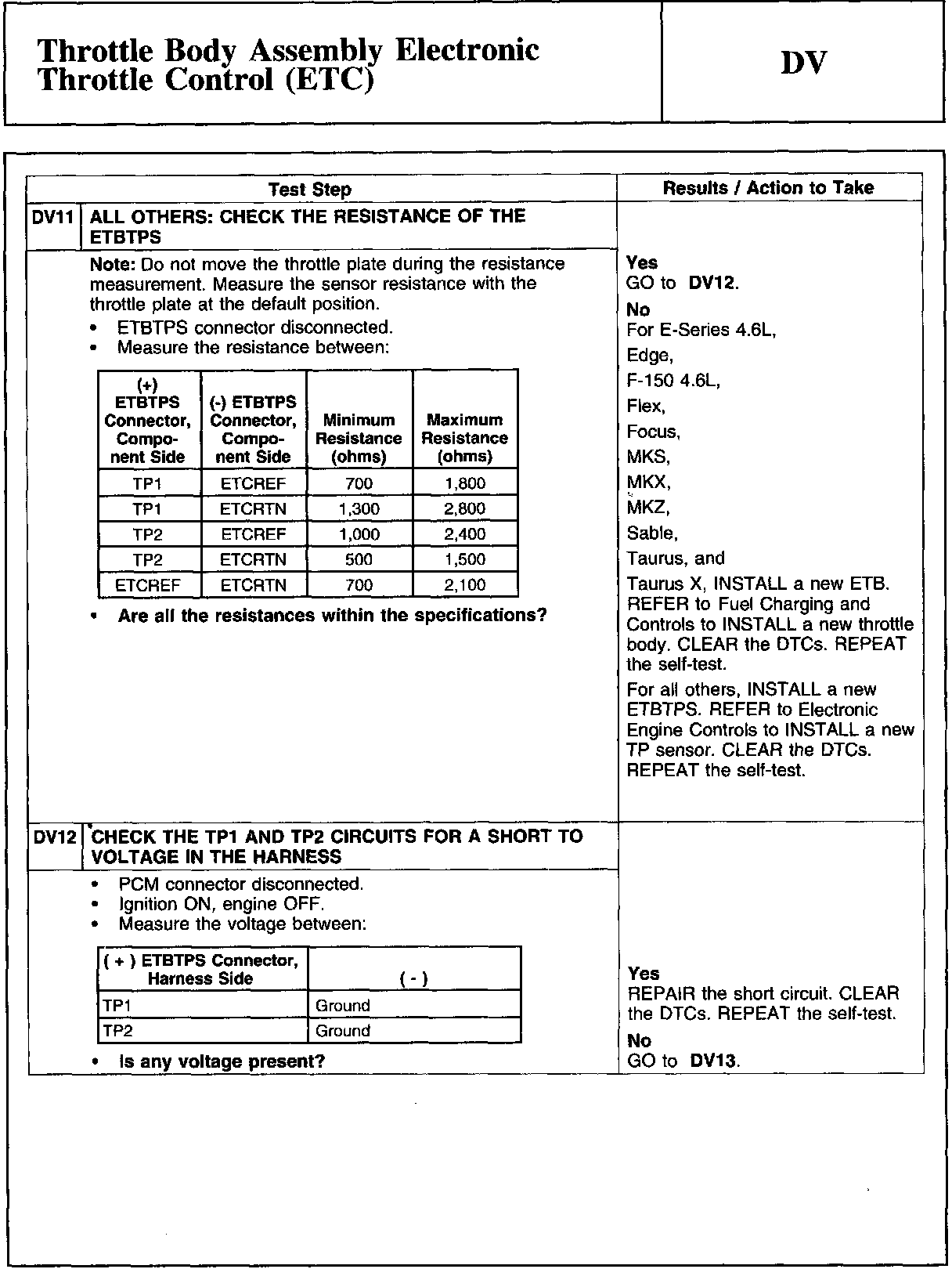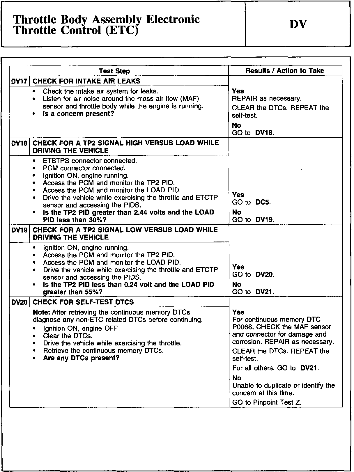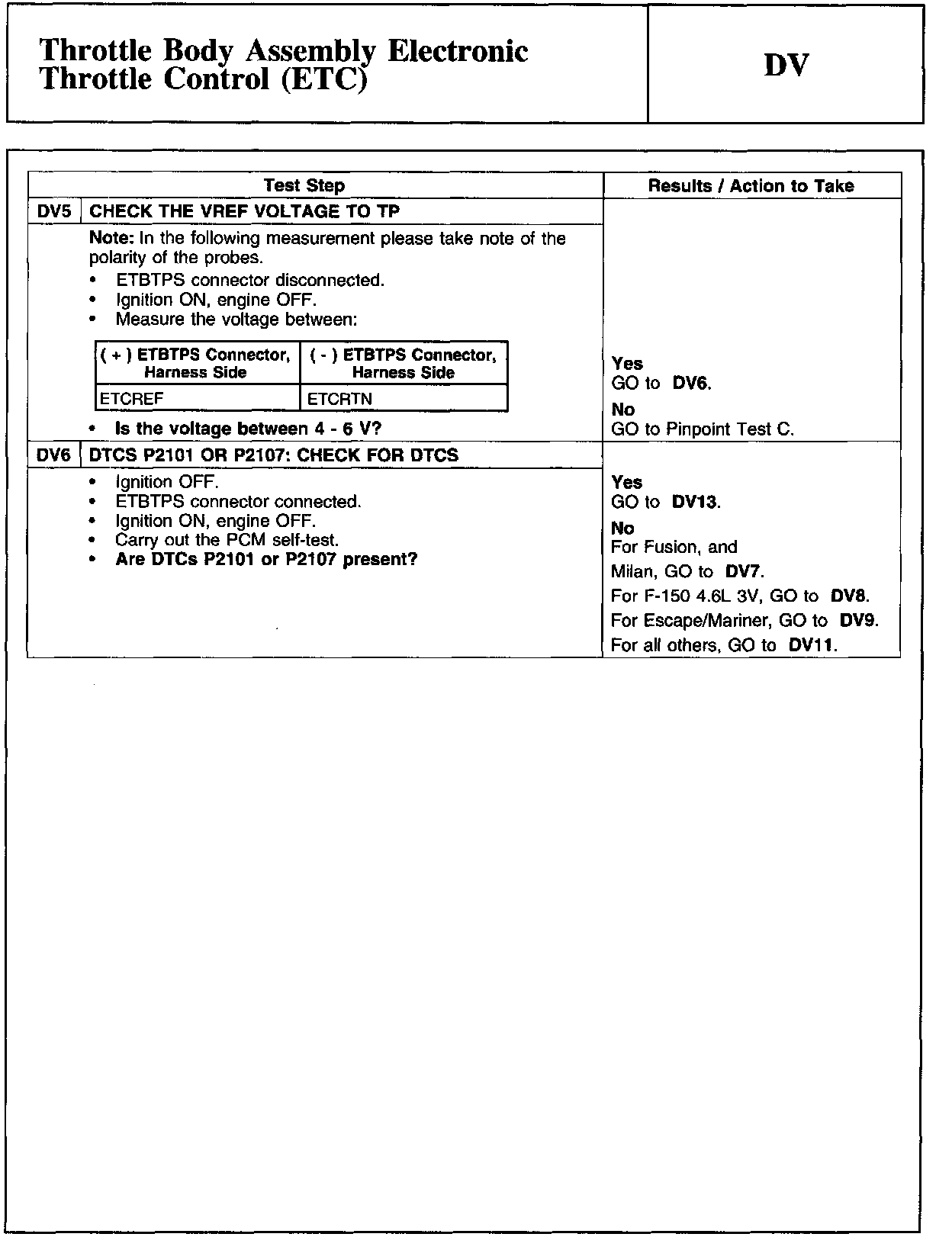 PINPOINT TEST DV: THROTTLE BODY ASSEMBLY ELECTRONIC THROTTLE CONTROL (ETC)