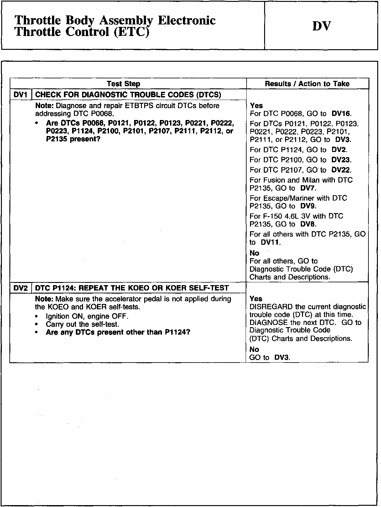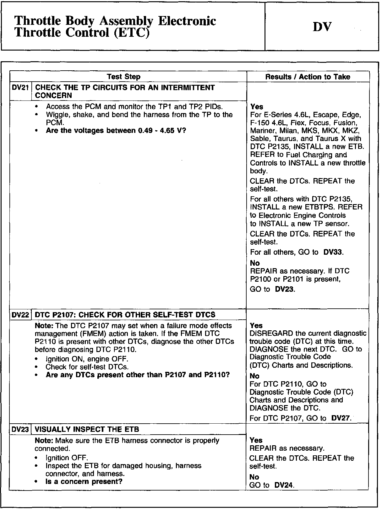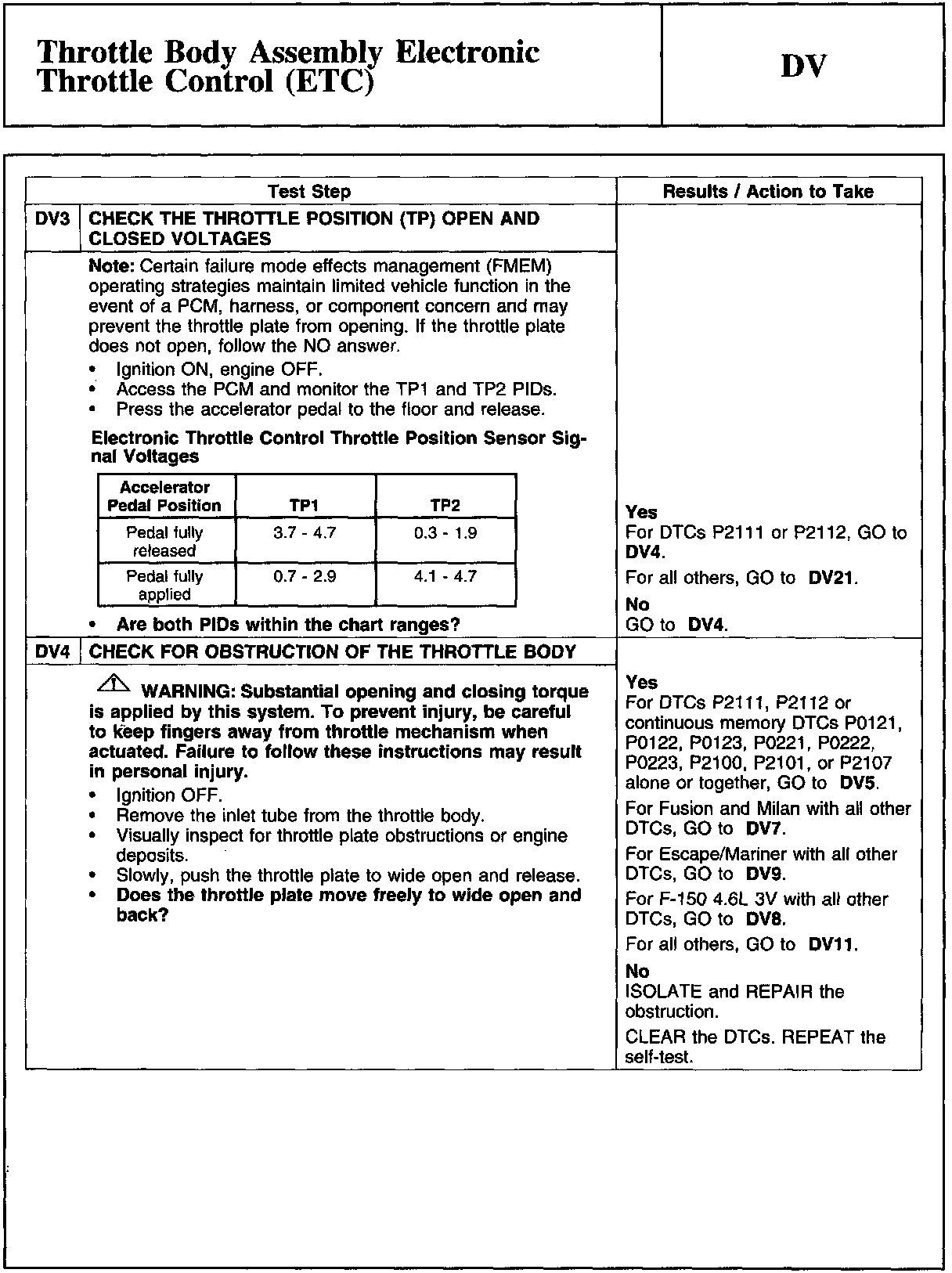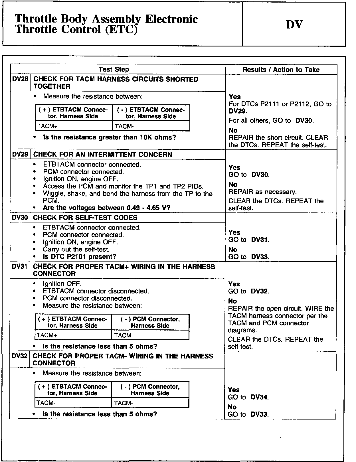 PINPOINT TEST DV: THROTTLE BODY ASSEMBLY ELECTRONIC THROTTLE CONTROL (ETC)