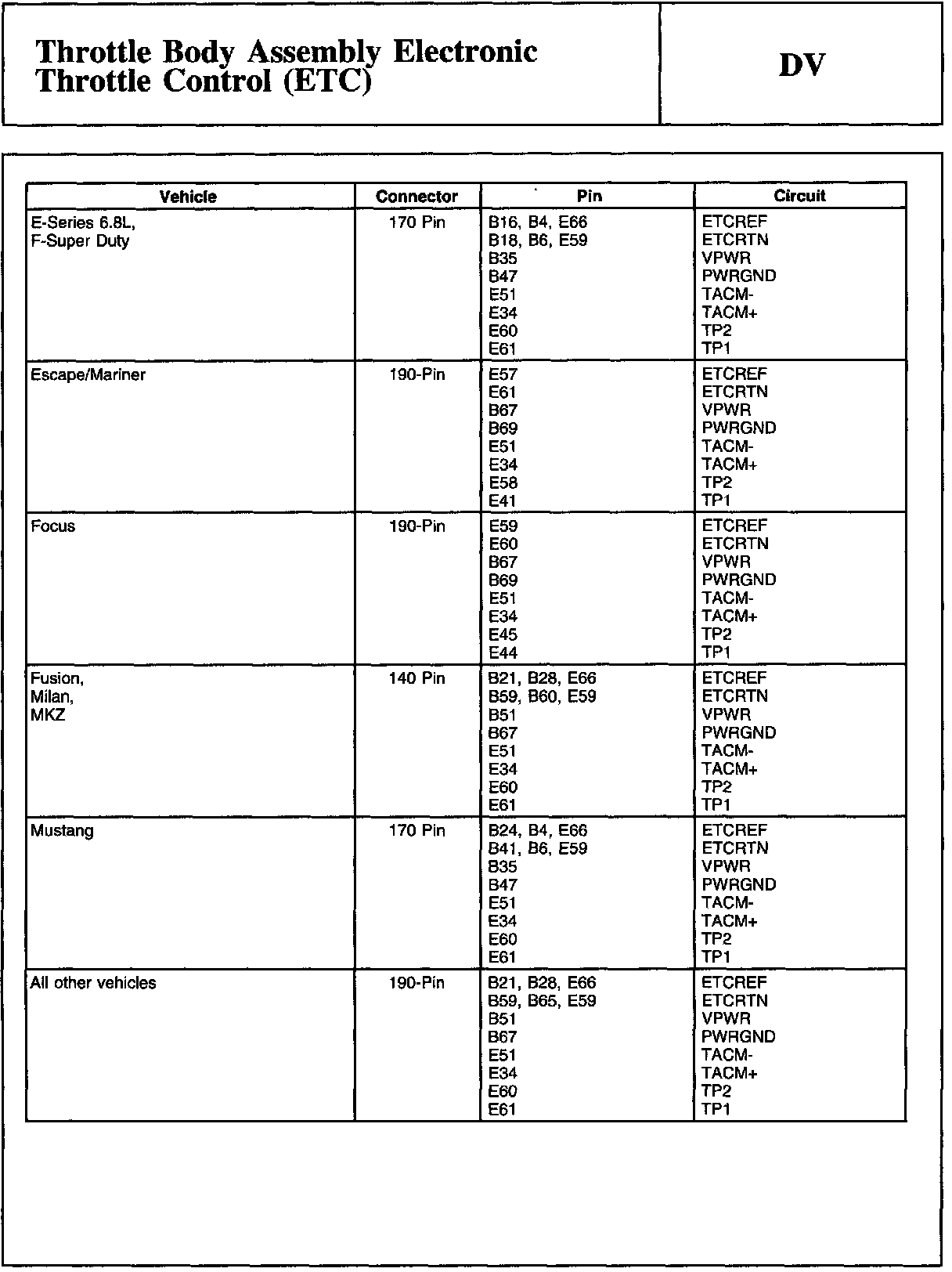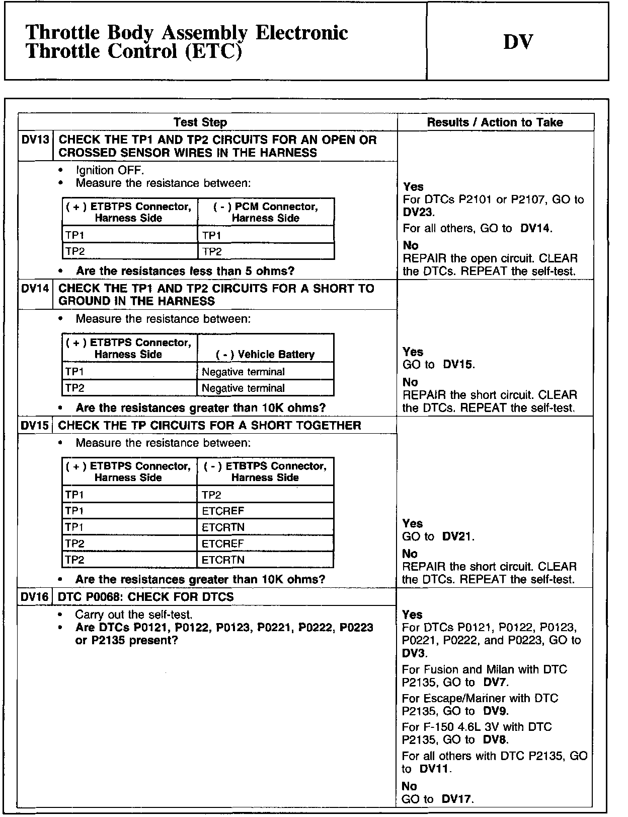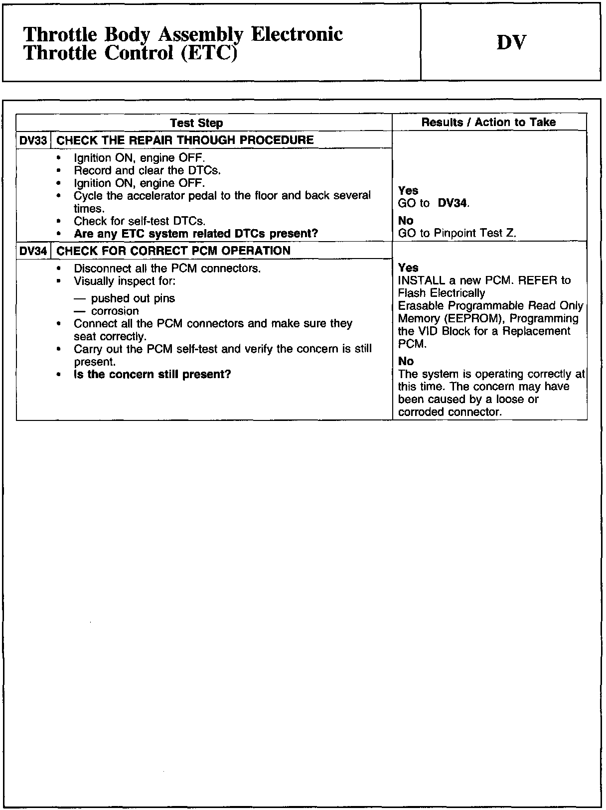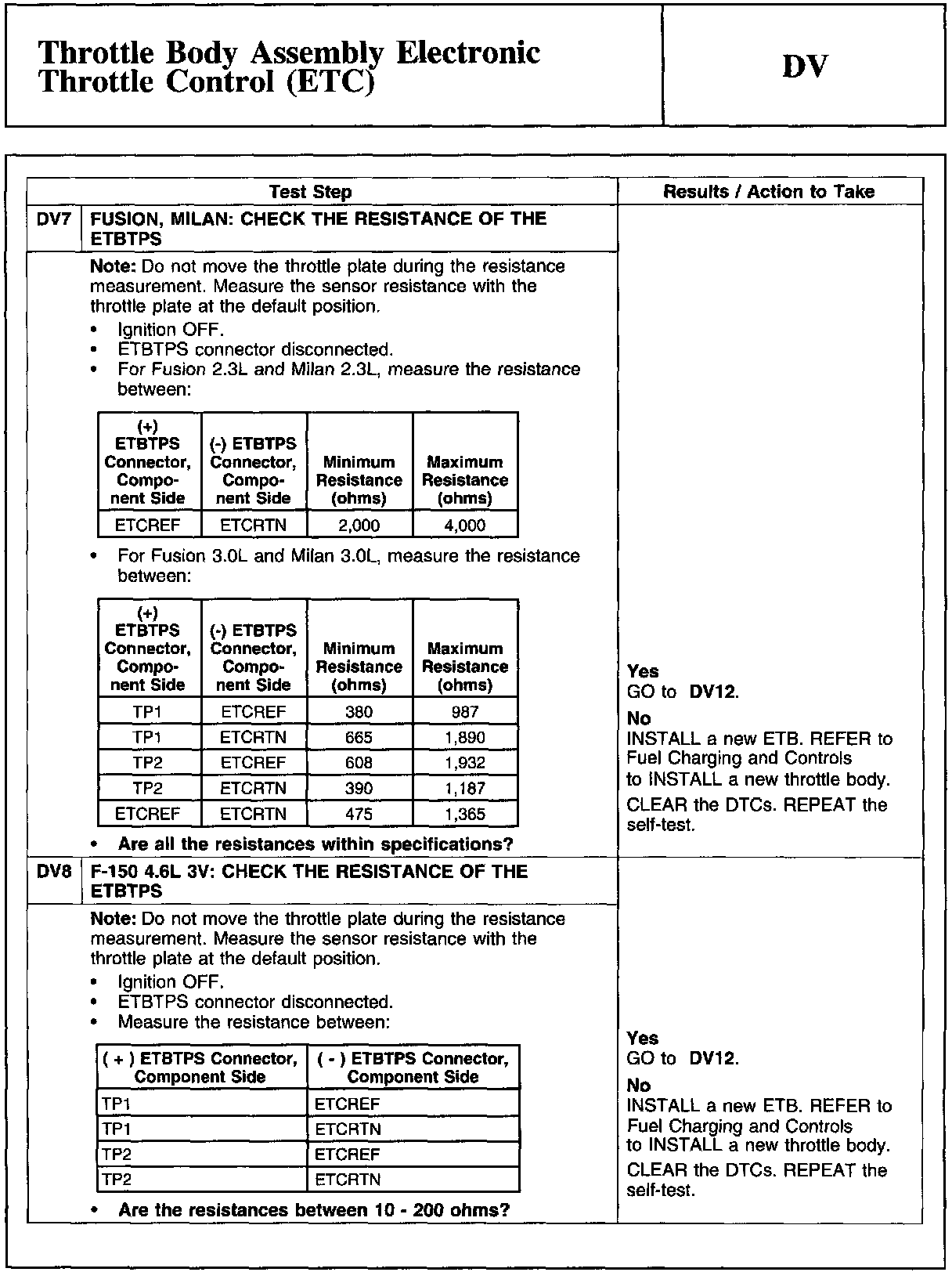 PINPOINT TEST DV: THROTTLE BODY ASSEMBLY ELECTRONIC THROTTLE CONTROL (ETC)