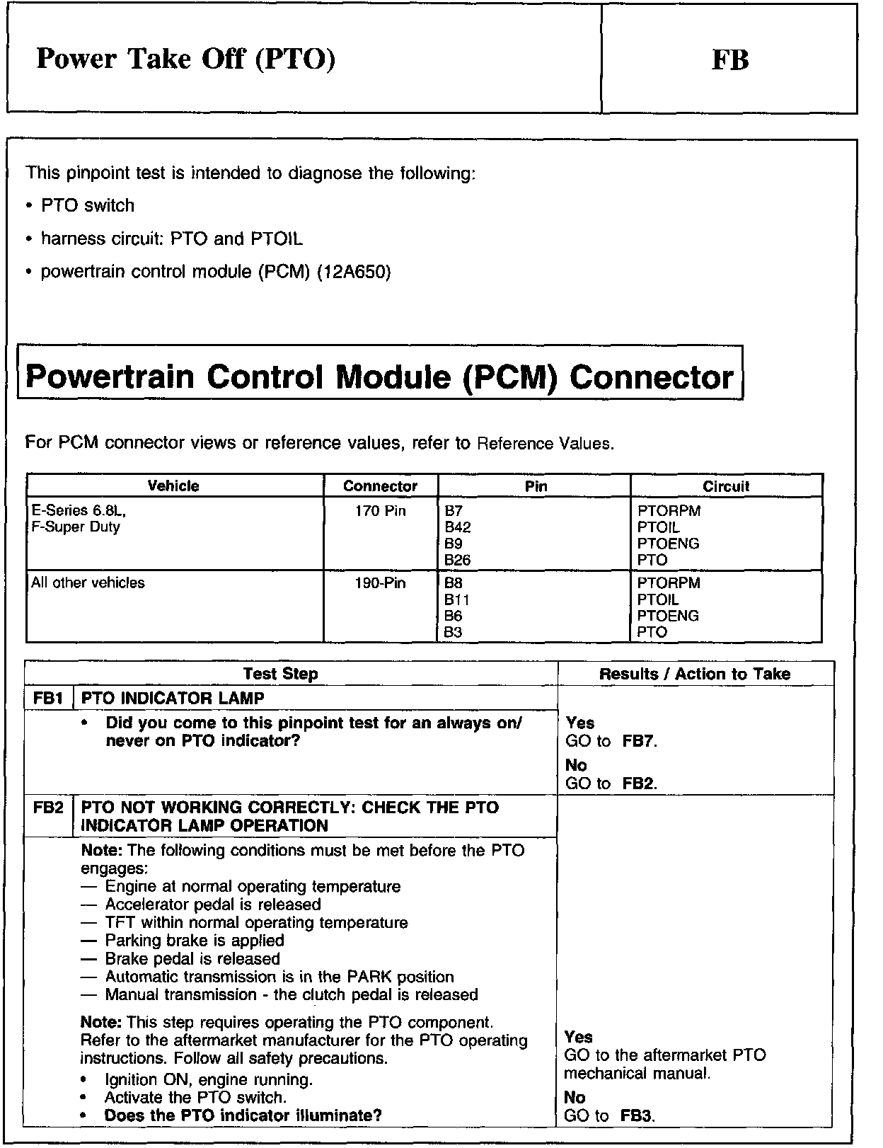 PINPOINT TEST FB: POWER TAKE OFF (PTO)