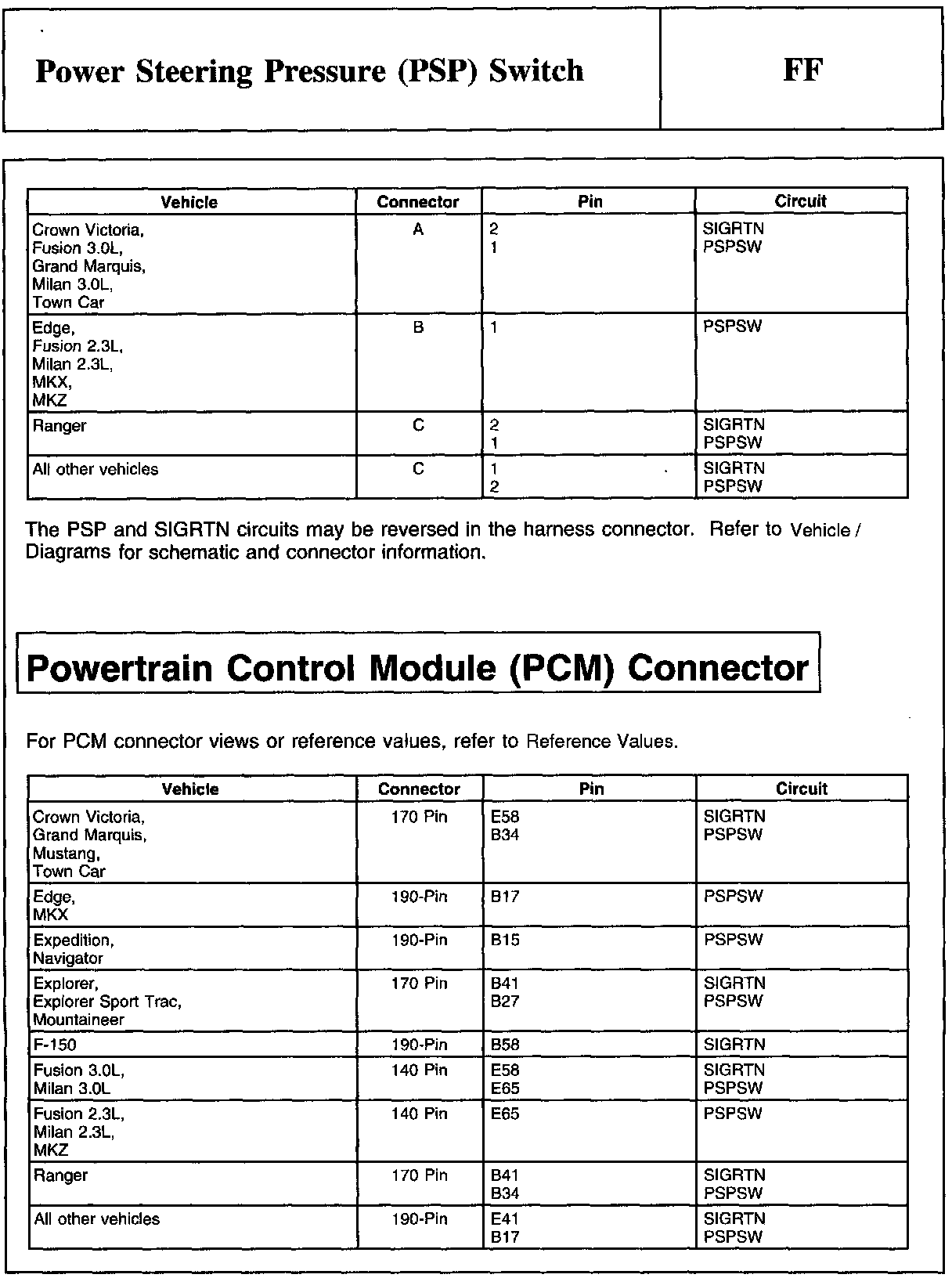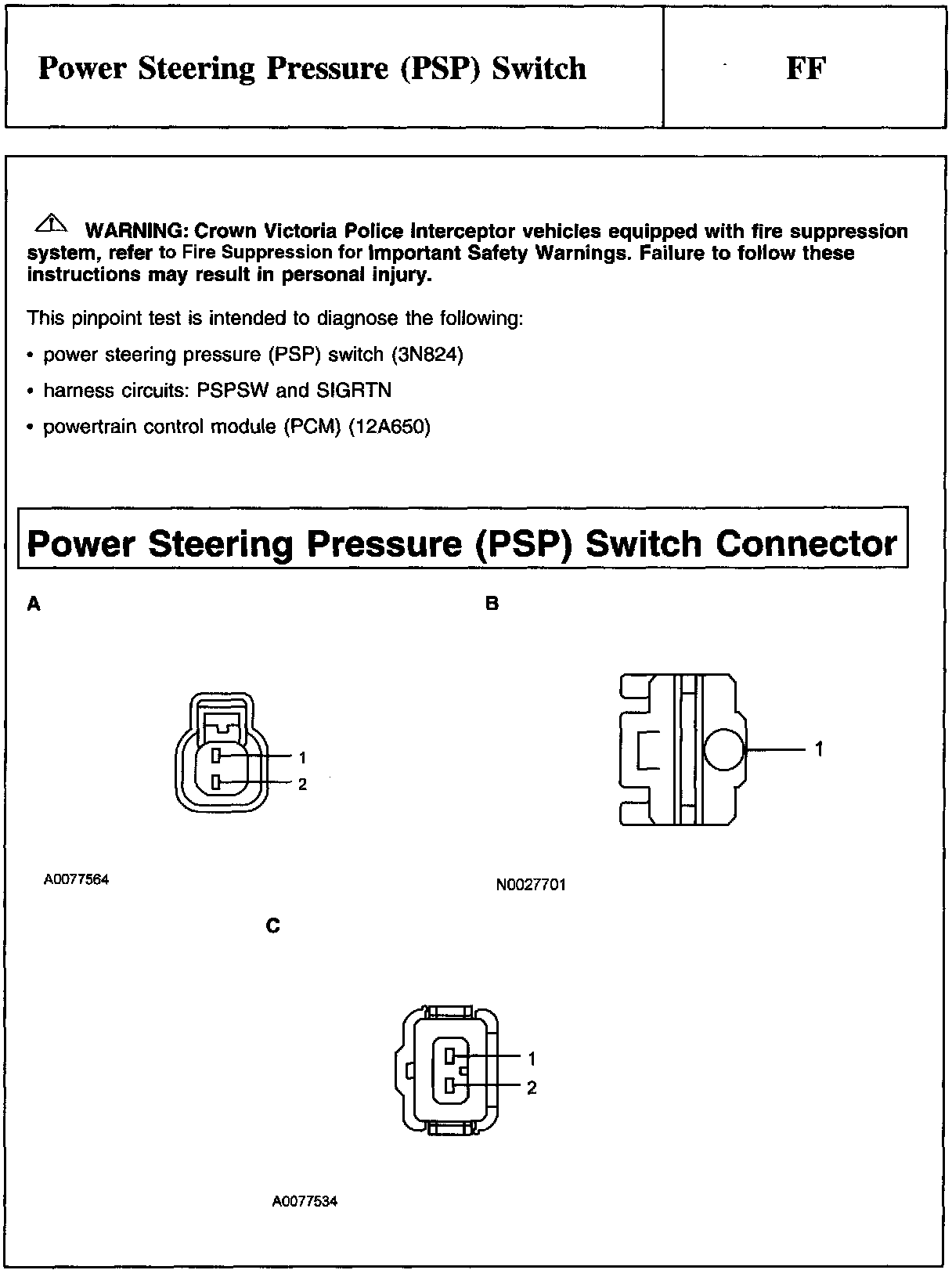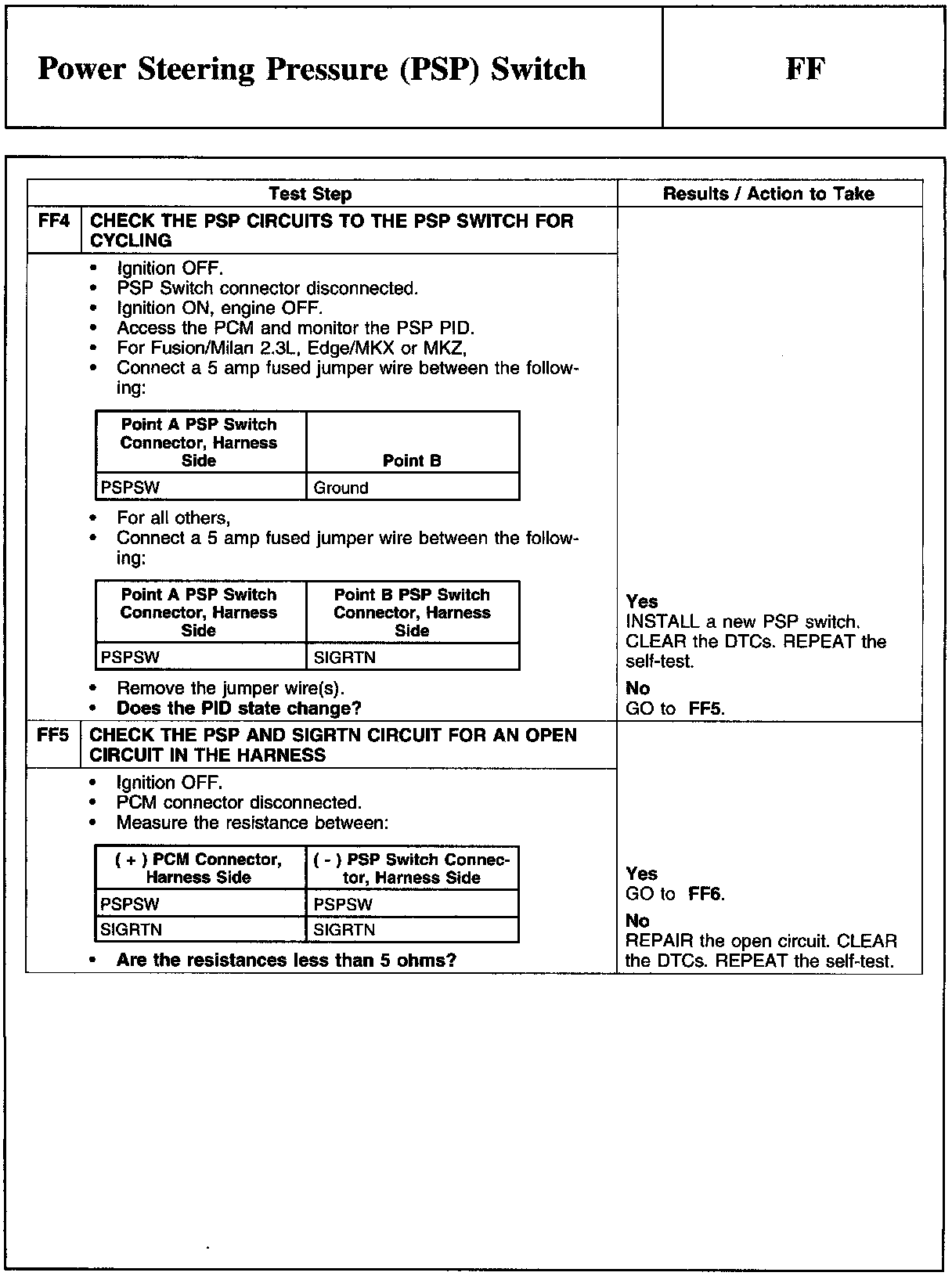 PINPOINT TEST FF: POWER STEERING PRESSURE (PSP) SWITCH