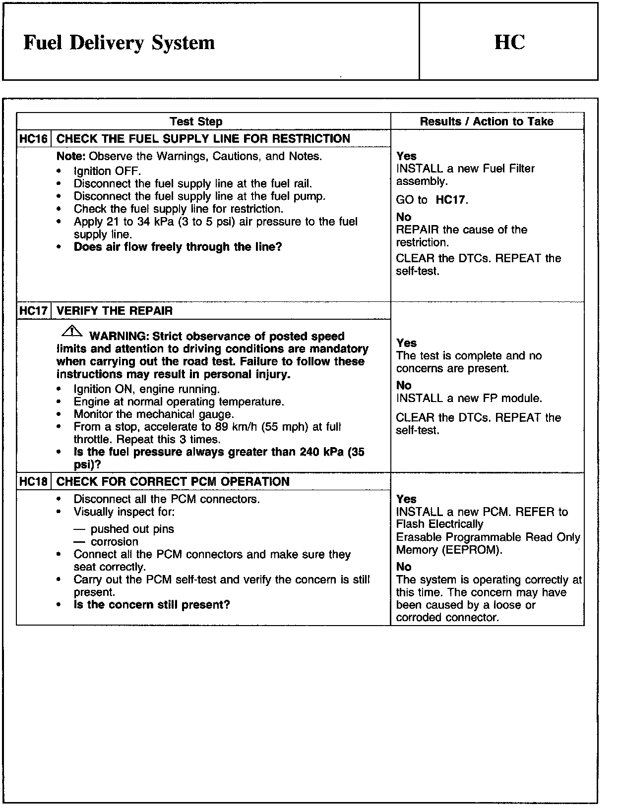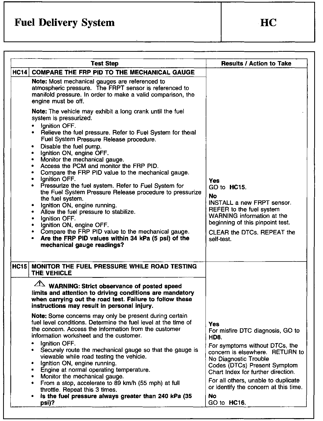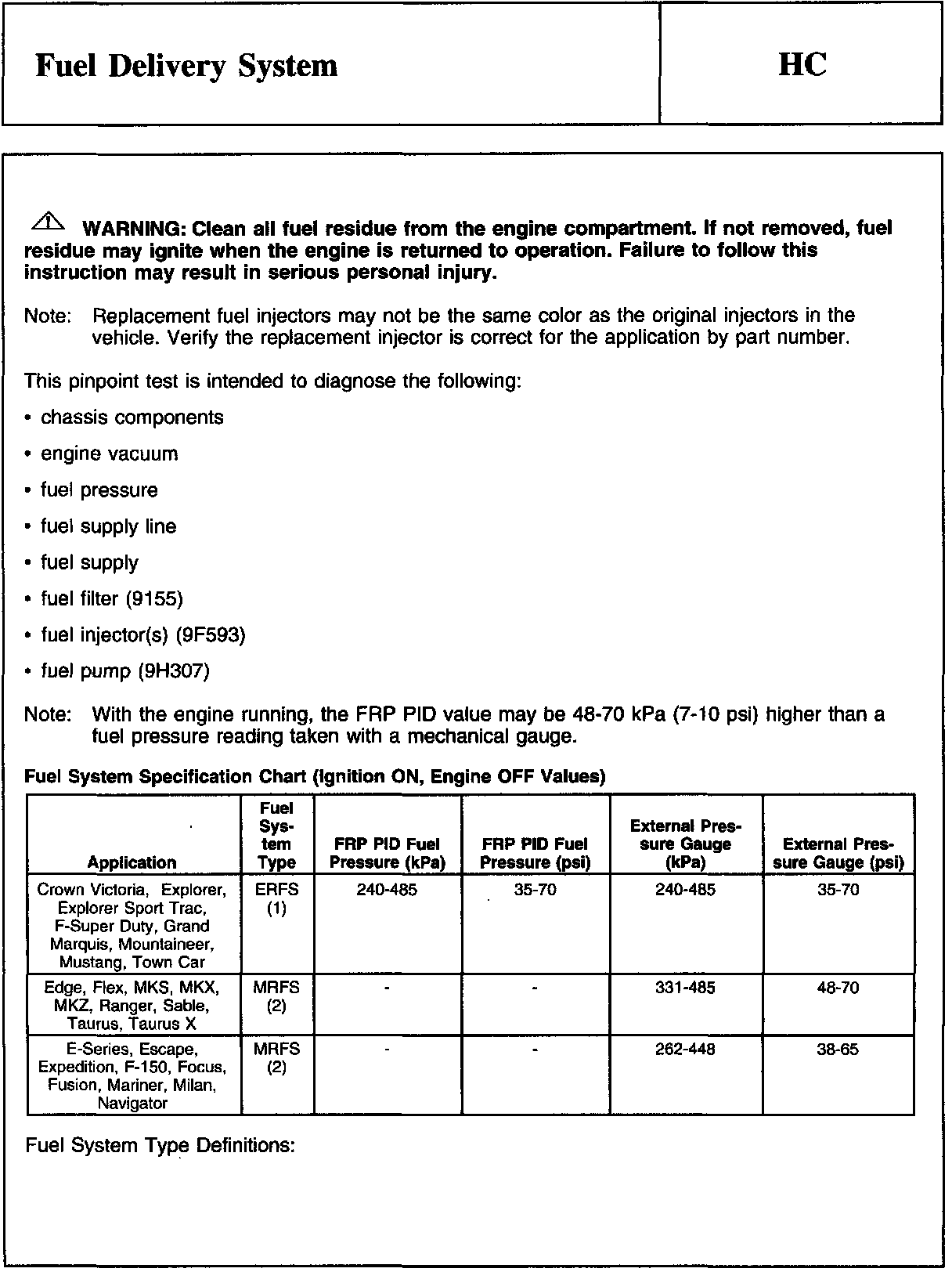 PINPOINT TEST HC: FUEL DELIVERY SYSTEM