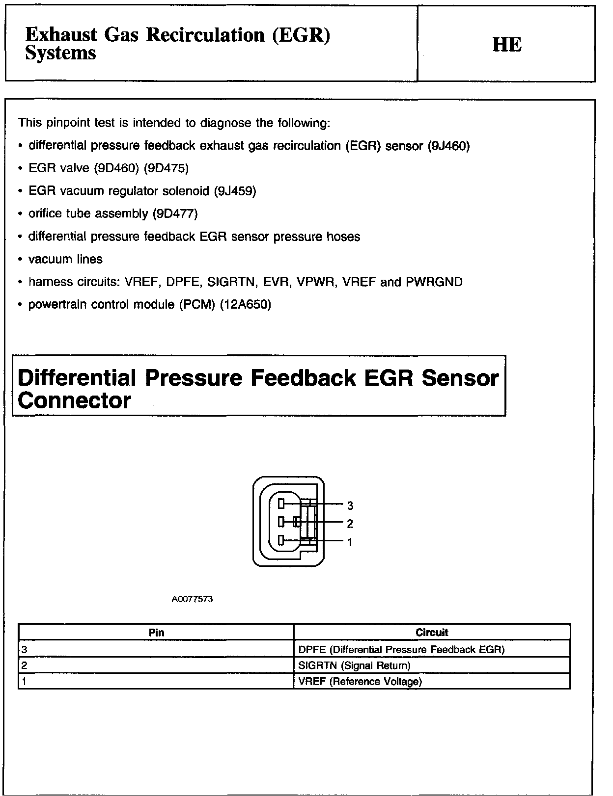 PINPOINT TEST HE: EXHAUST GAS RECIRCULATION (EGR) SYSTEMSDifferential Pressure Feedback EGR Sensor Connector: