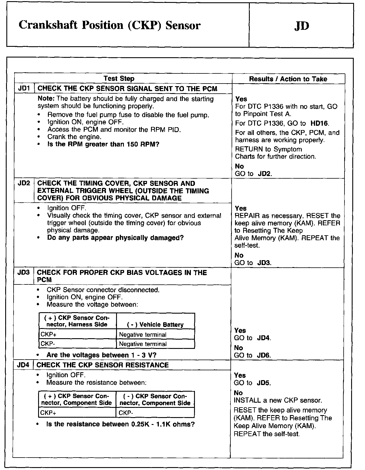 PINPOINT TEST JD: CRANKSHAFT POSITION (CKP) SENSOR