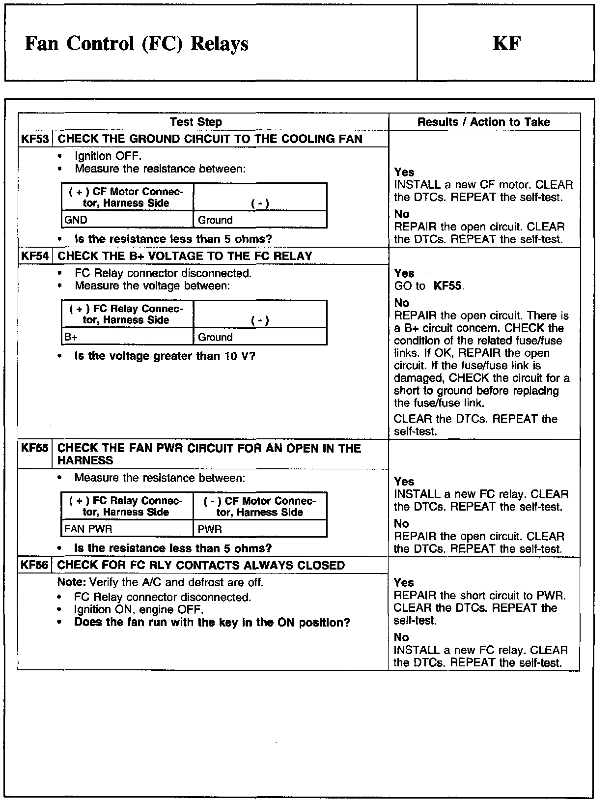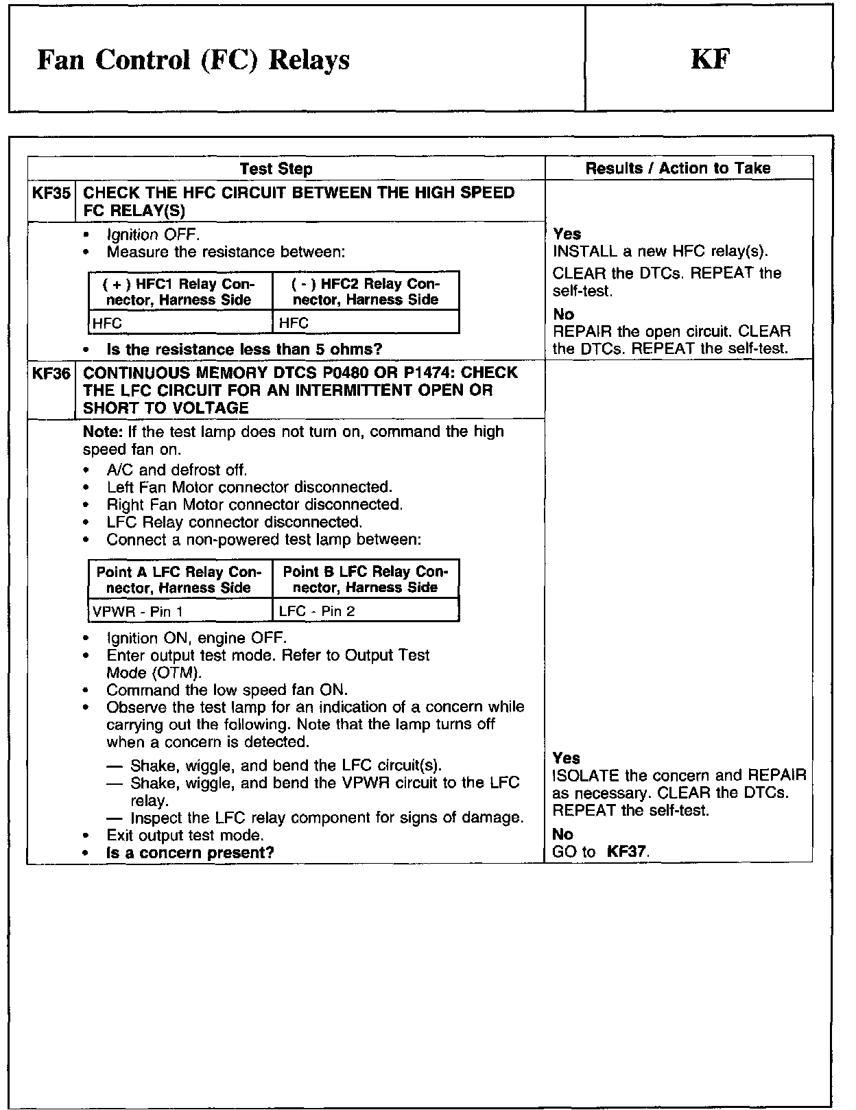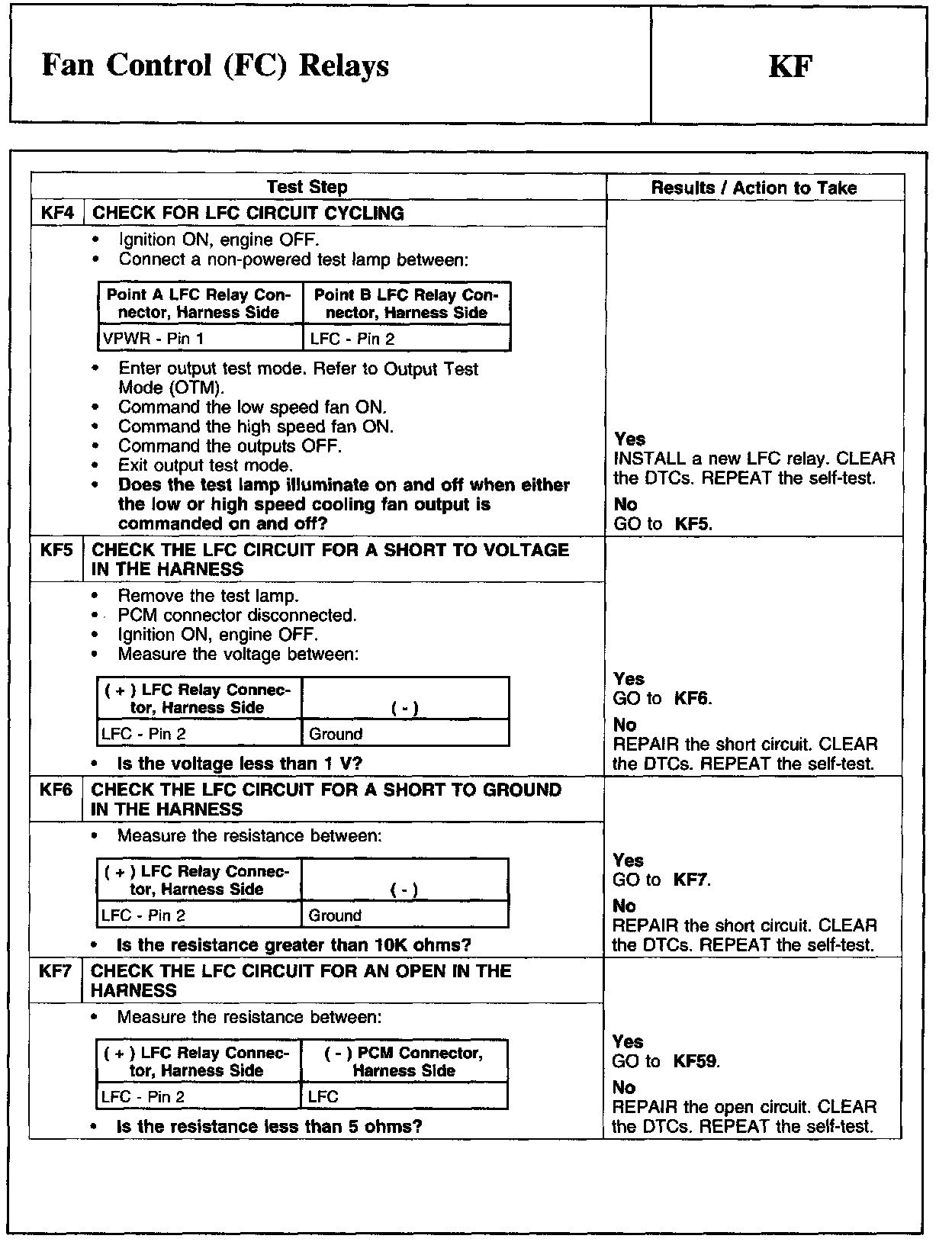 PINPOINT TEST KF: FAN CONTROL (FC) RELAYSThree Speed Fan Operation And Low Fan Control Relay Connector: