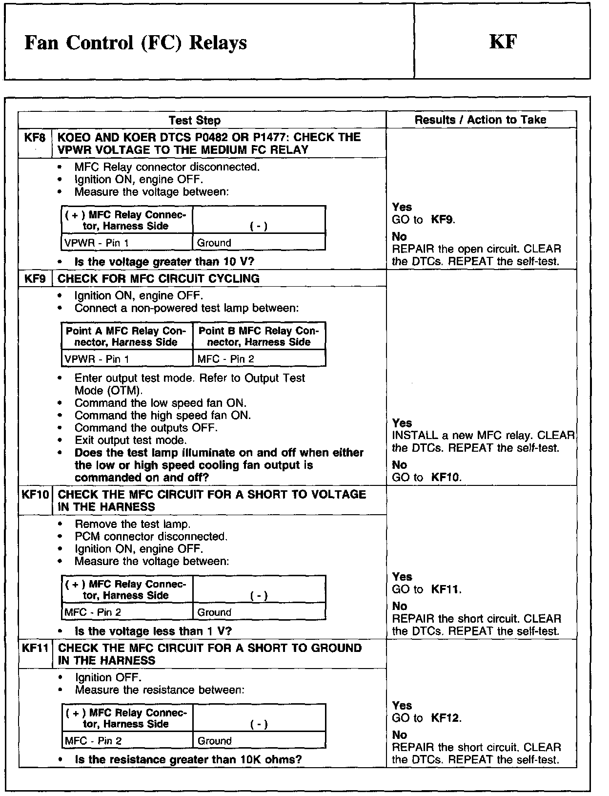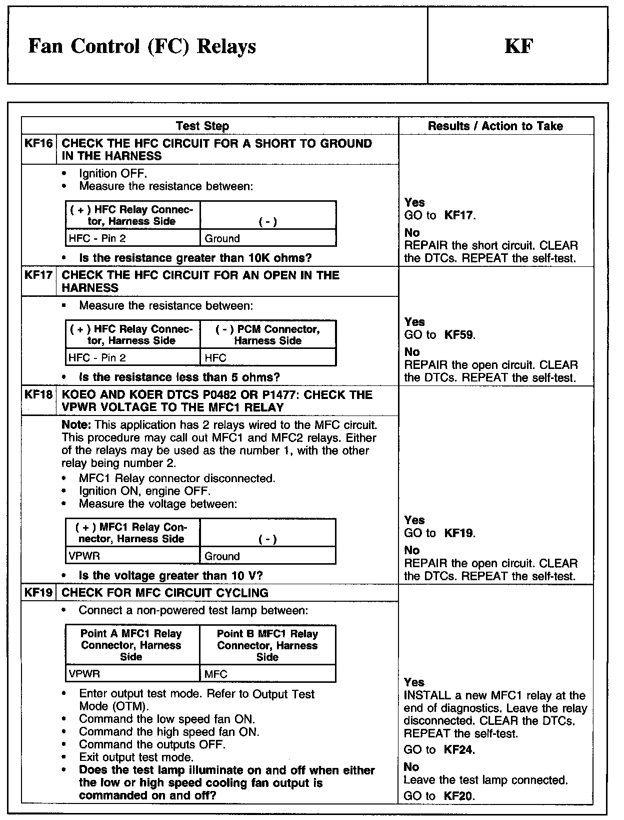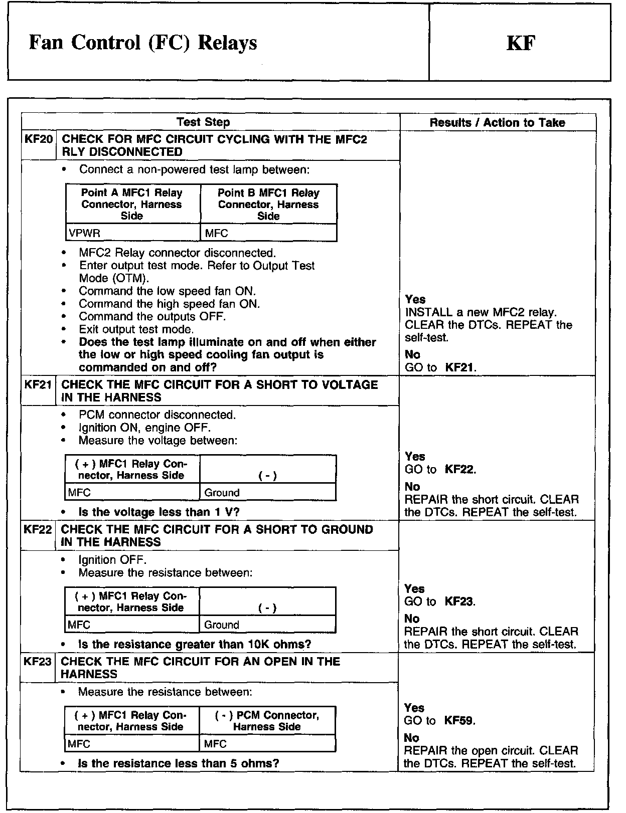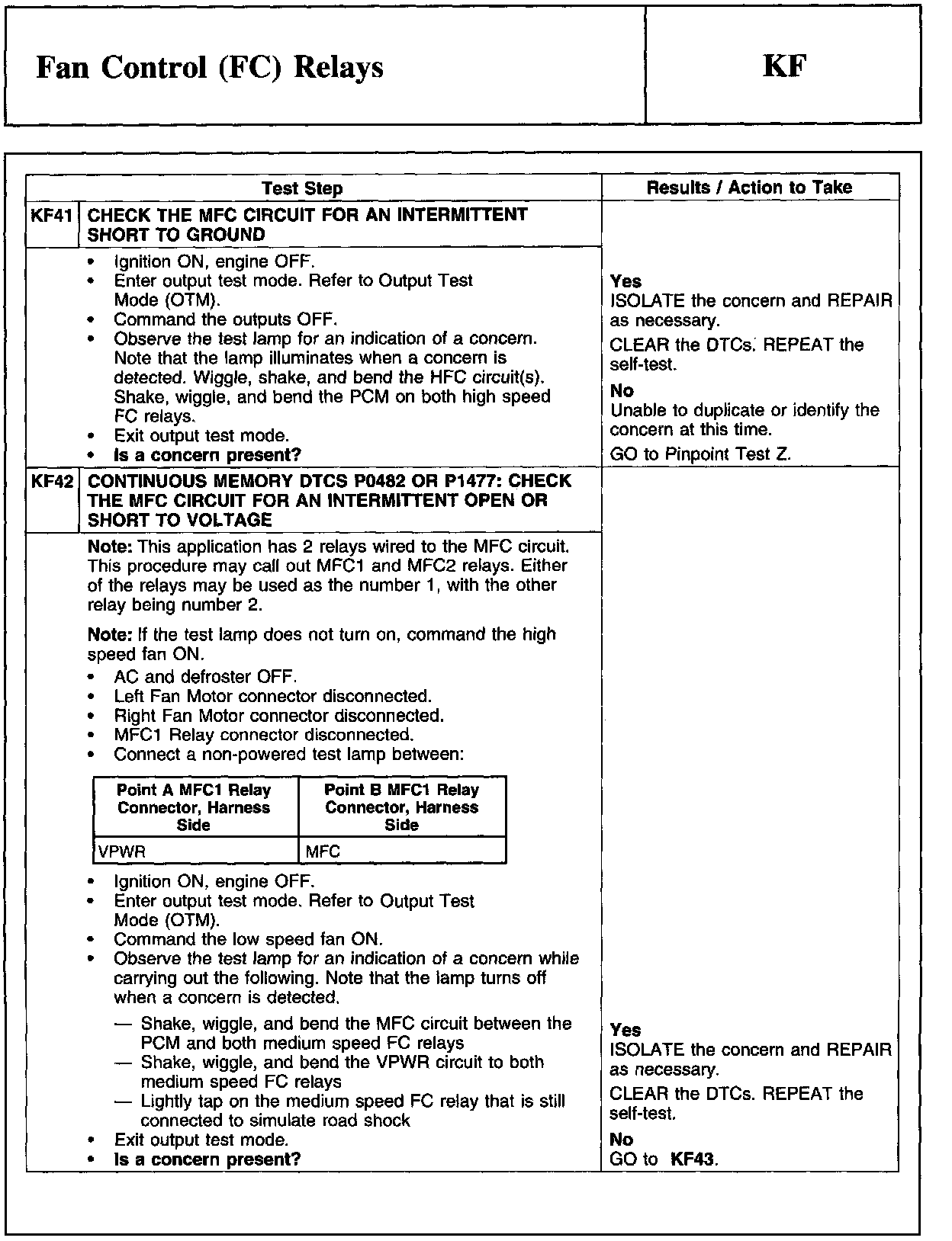 PINPOINT TEST KF: FAN CONTROL (FC) RELAYSThree Speed Fan Operation And Low Fan Control Relay Connector: