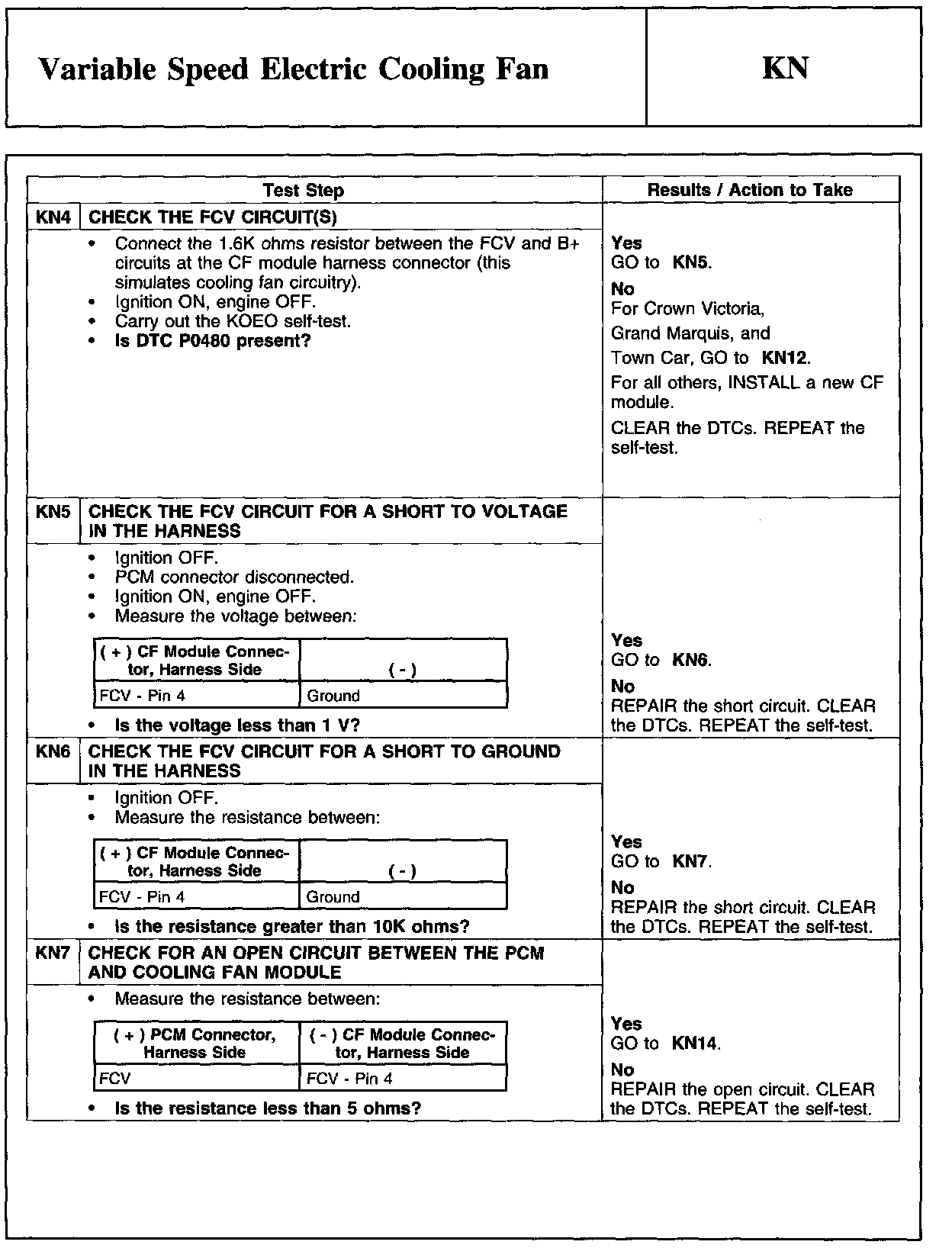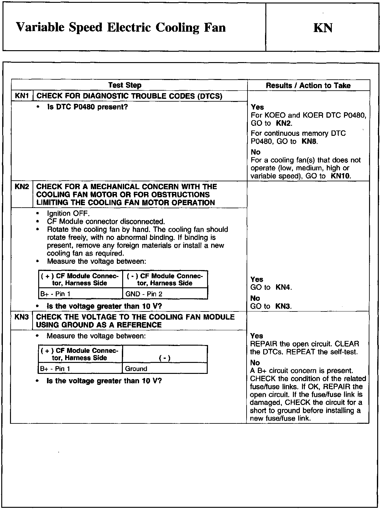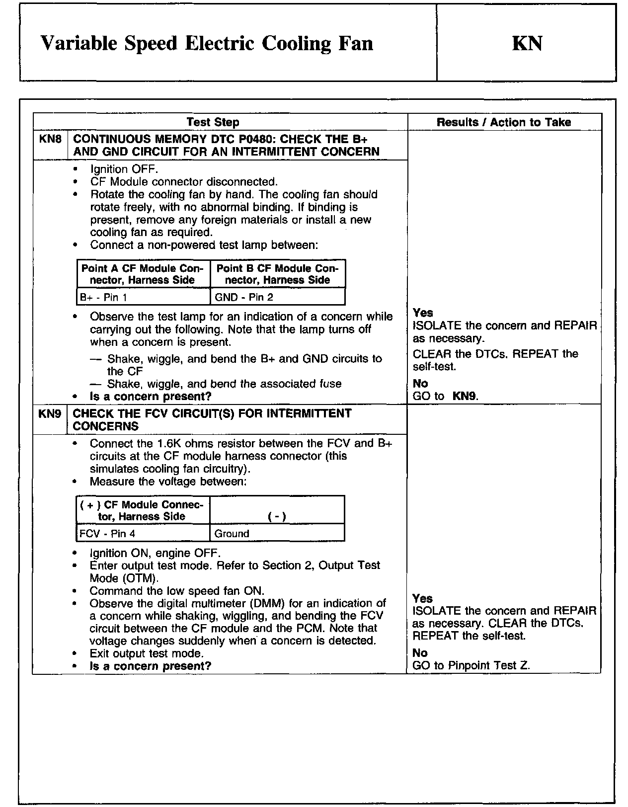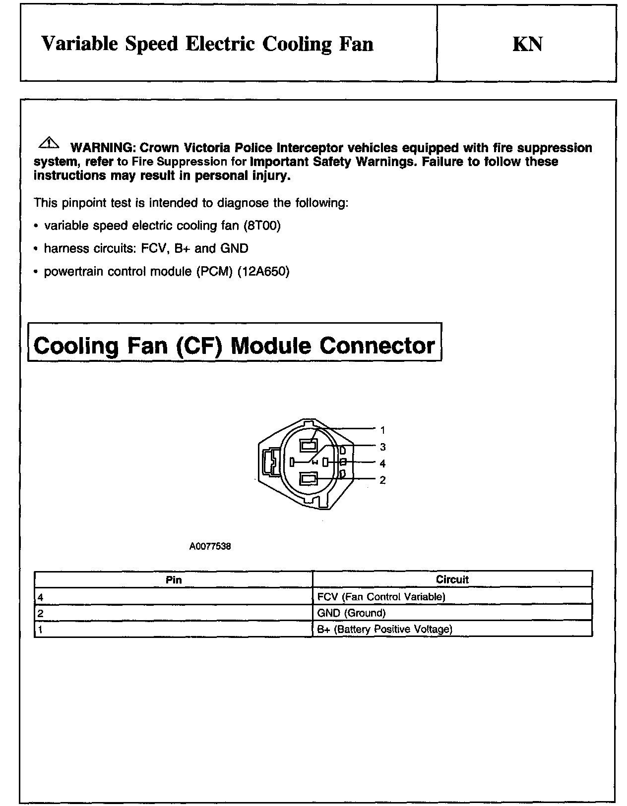PINPOINT TEST KN: VARIABLE SPEED ELECTRIC COOLING FANWARNING And Cooling Fan Module Connector: