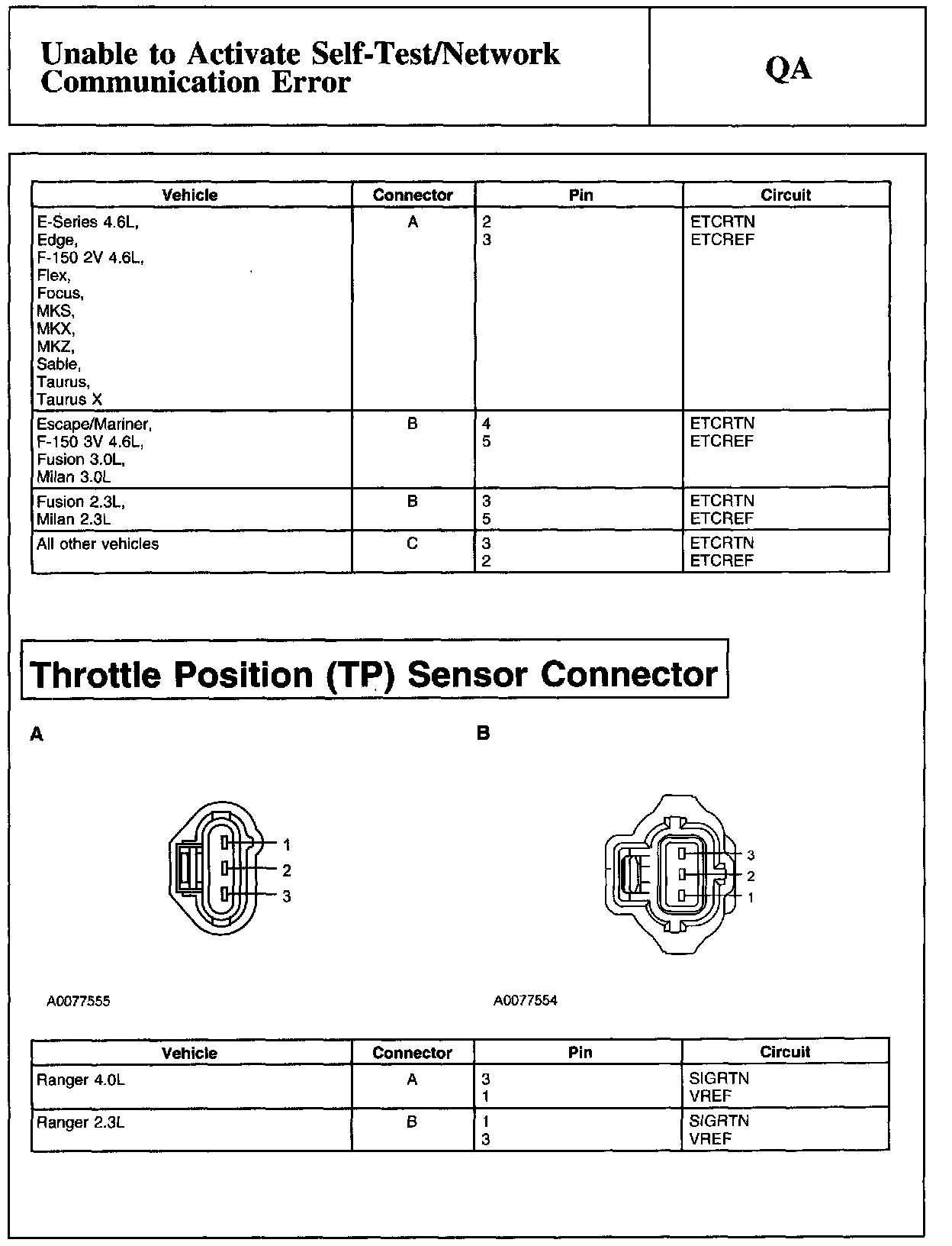 PINPOINT TEST QA: UNABLE TO ACTIVATE SELF-TEST/NETWORK COMMUNICATION ERRORElectronic Throttle Body Throttle Position Sensor Connector: