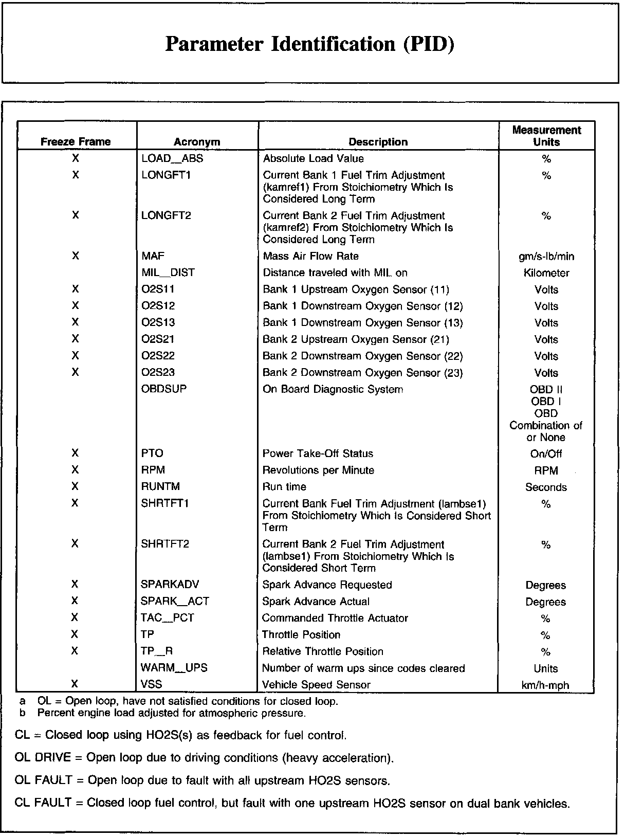 Description And Generic OBD List: