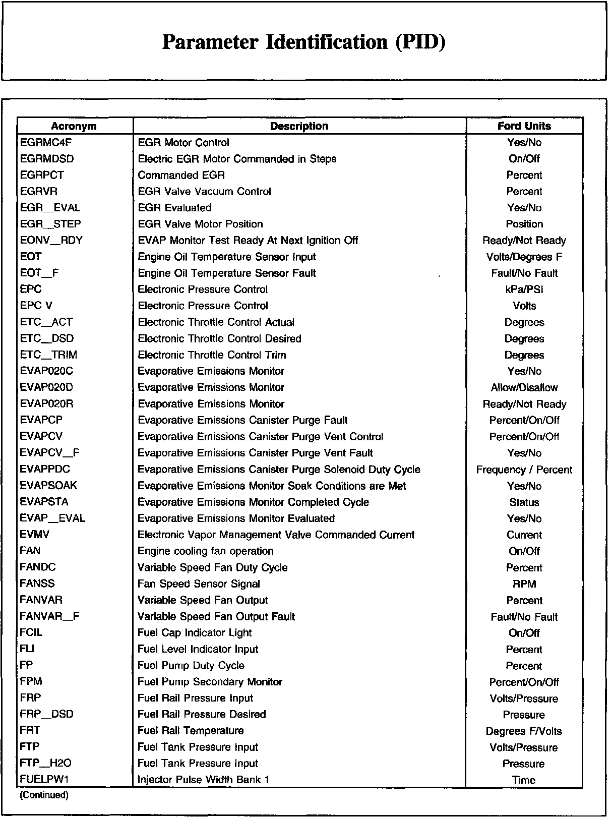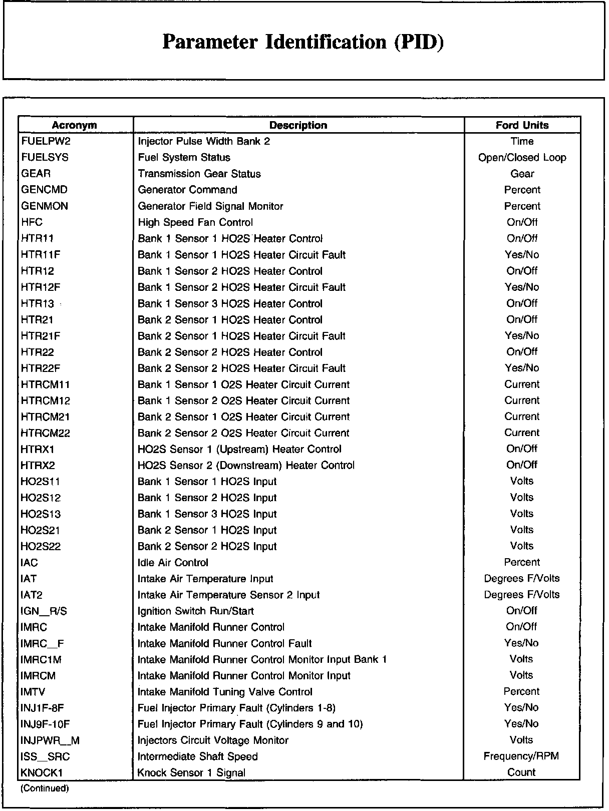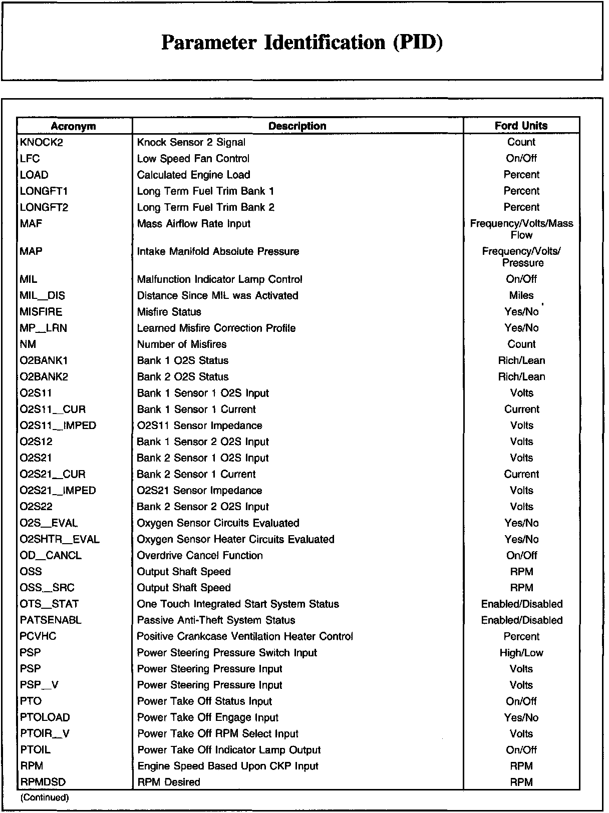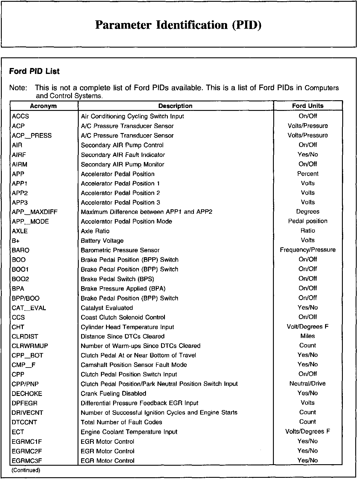 Ford PID List (Part 2):