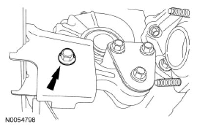 6. Remove the 2 catalytic converter support bracket-to-engine block bolts.