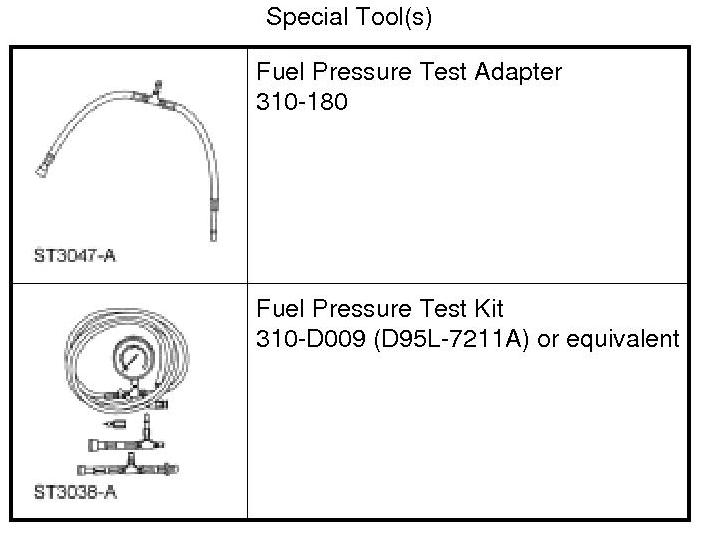 Test the fuel system pressure to make sure it is within the specified range. For additional information, refer to Specifications.