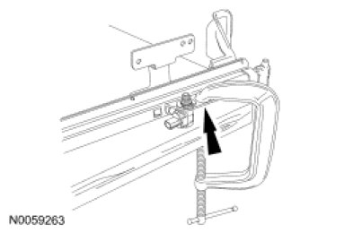 9. NOTICE: Do not overtighten the side plate with the Occupant Classification Sensor (OCS) weight sensor bolts to the bench or table. Tighten only enough to compress the spring washer. Overtightening may damage the side plate or OCS weight sensor bolts.