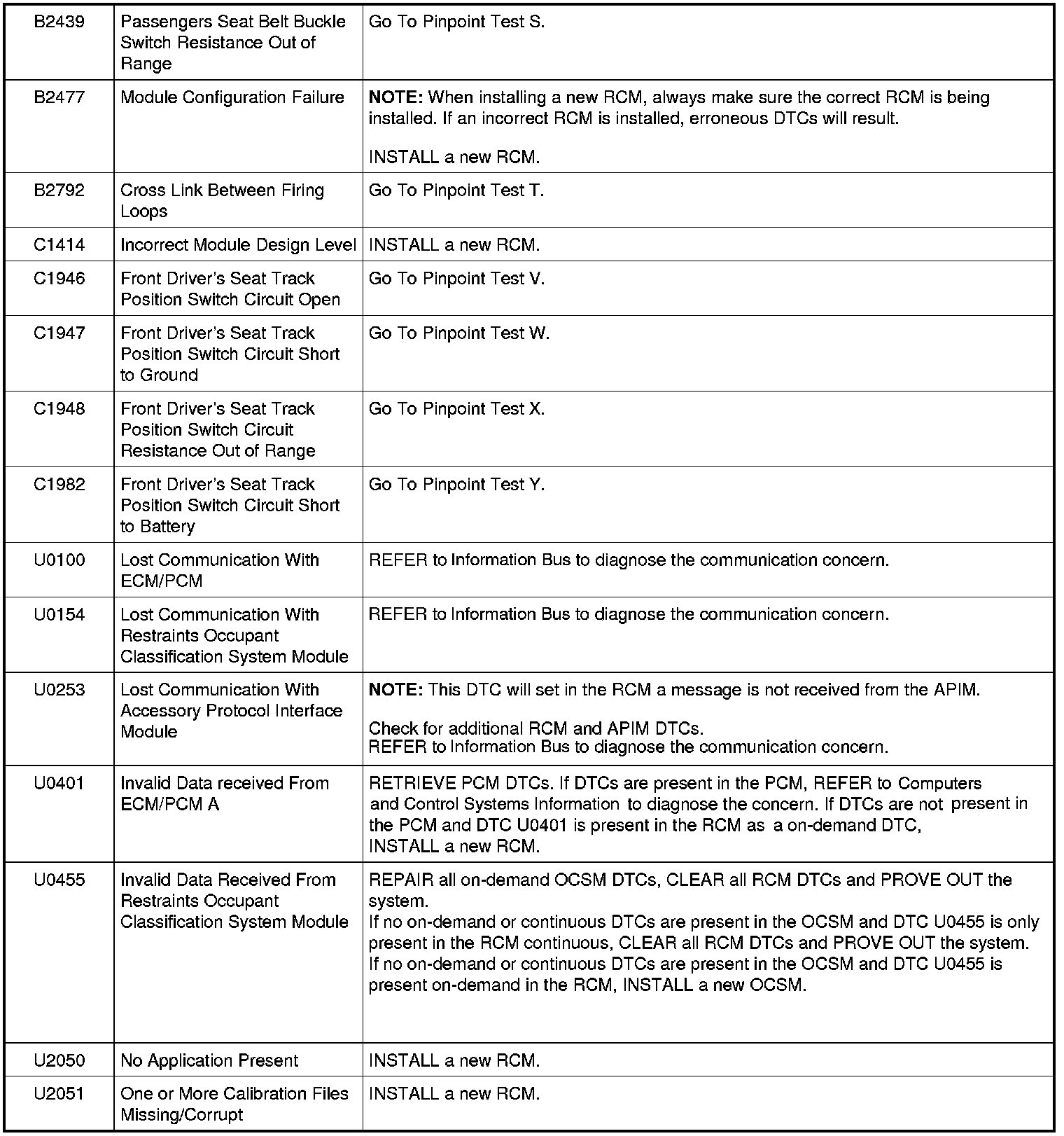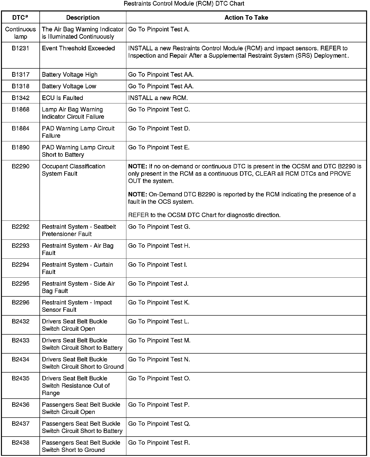 The DTCs can be retrieved from the RCM and the OCSM with a scan tool via the DLC.