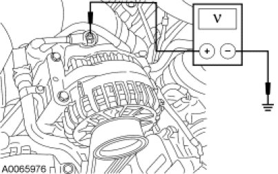 - Measure the voltage between generator C102B, B+ circuit SDC14 (RD) and ground.