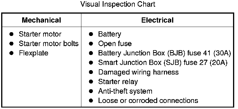 NOTE: The anti-theft system must be functioning correctly before a logical starting system diagnosis can be carried out. Address anti-theft system concerns before continuing. Refer to Antitheft and Alarm Systems.