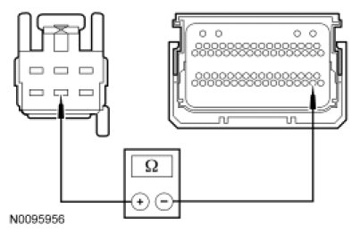 - Measure the resistance between selector lever harness C3245-5, circuit CET34 (BN/GN) and PCM C175B-16, circuit CET34 (BN/GN).
