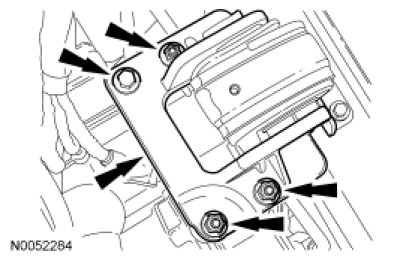 - Tighten the transaxle support insulator bracket nuts to 63 Nm (46 lb-ft).