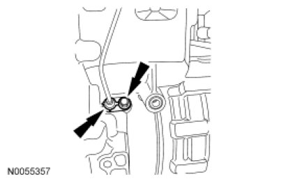 14. Remove and discard the transmission fluid cooler tube bolt and remove the transmission fluid cooler tube.
