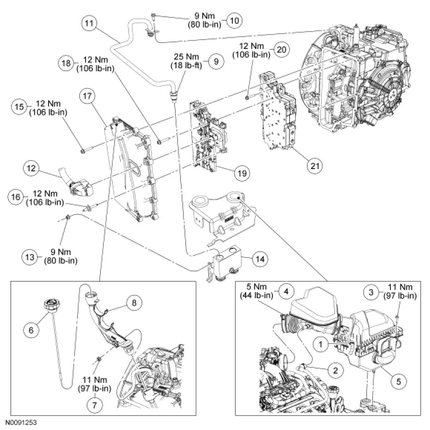 - Tighten to 9 Nm (80 lb-in).