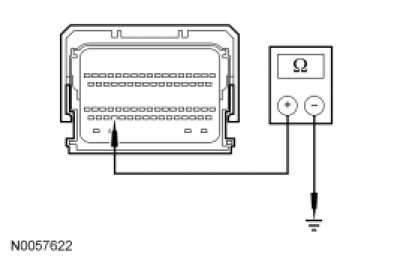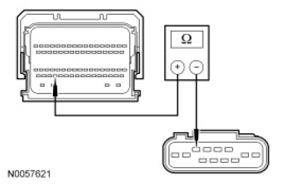 - Measure the resistance between PCM C175b-63, circuit VMC05 (VT/OG), harness side and ground.