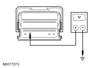 - Measure the voltage between PCM C175b-63, circuit VMC05 (VT/OG), harness side and ground.