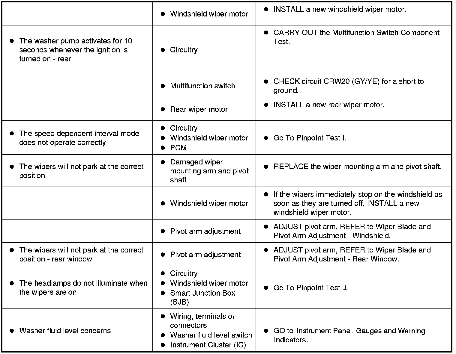 Symptom Chart - Wipers and Washers