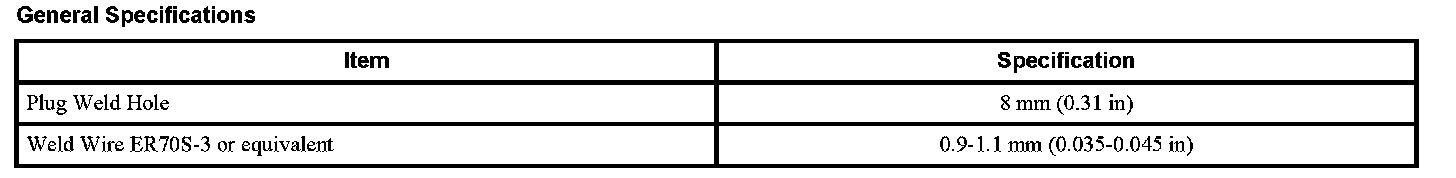 General Specifications - Welding Specifications: