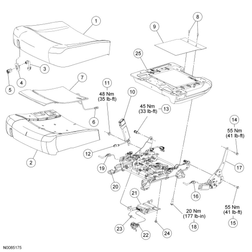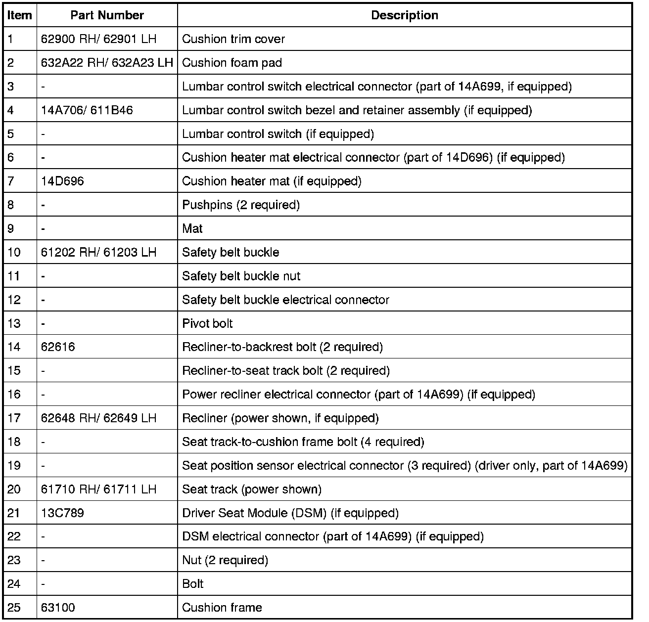 NOTE: Driver seat shown, for disassembly and assembly of the passenger seat cushion, refer to Occupant Classification Sensor procedure in Air Bag Systems.