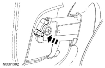 1. If equipped, insert a suitable tool into the LH pivot cover and attempt (push in) to reset the seat armrest locking pin. If the cover does not reset, proceed to Step 2.