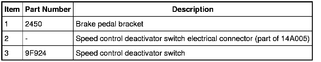 NOTICE: Do not press the pedal down when removing or installing the speed control deactivator switch, as the switch will be damaged.