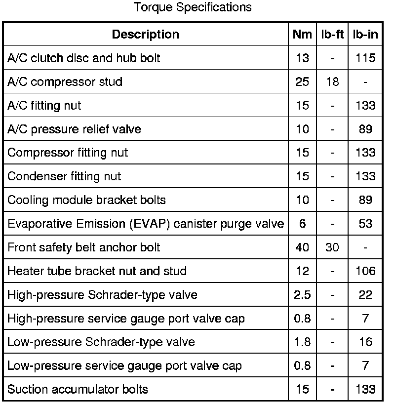 Torque Specifications